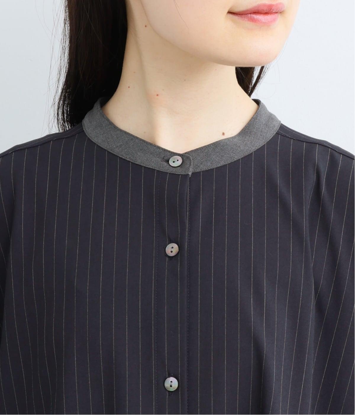華奢な貝ボタンと、うっすら細いストライプが大人の品をプラス。