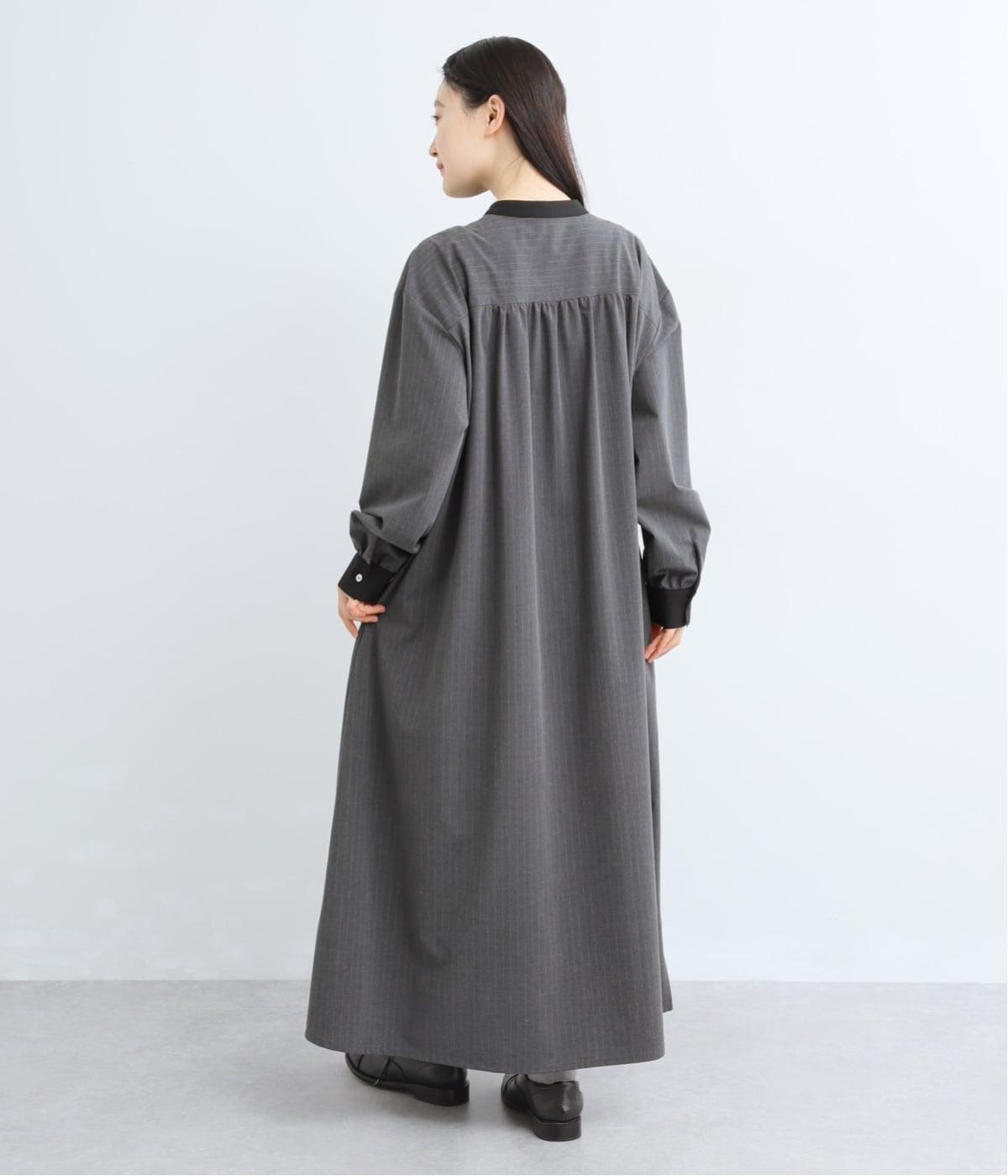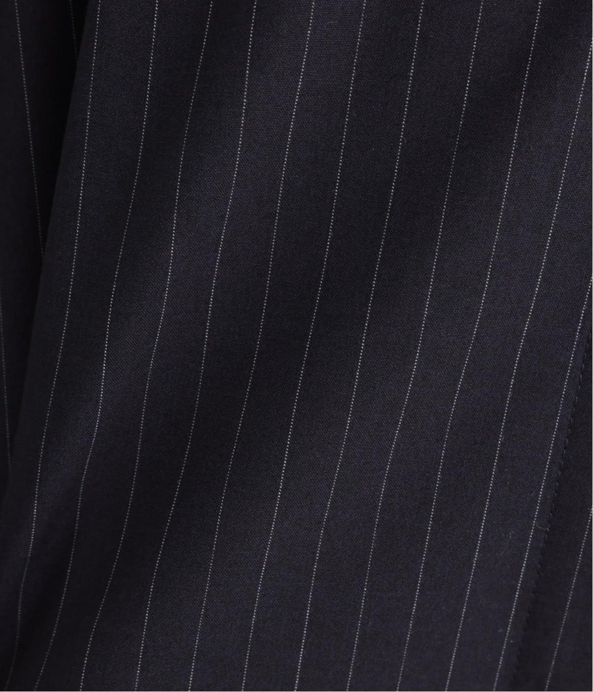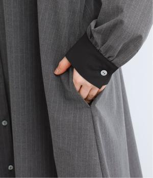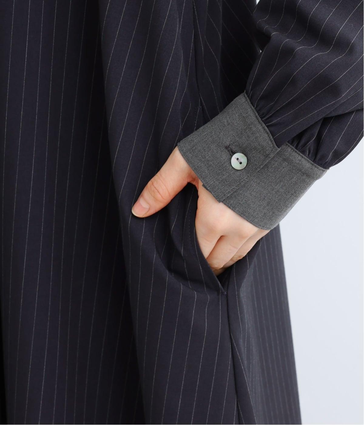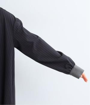 細めのピンストライプに、袖のカフスと襟の配色がアクセント。