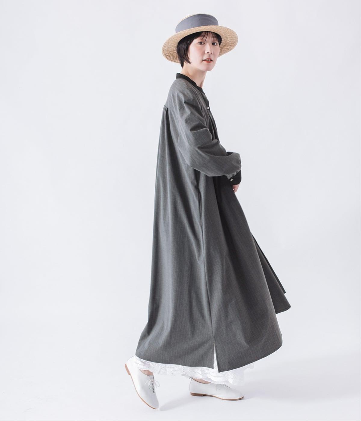 ワンピースとは異なる素材を重ねることで、着こなしに奥行きが出ます。
