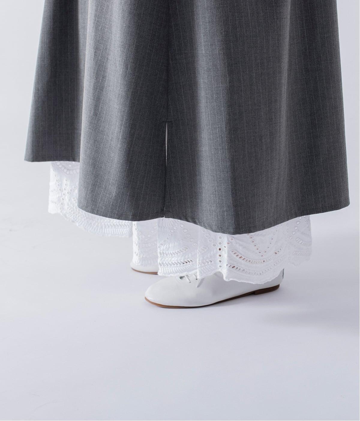 マニッシュな雰囲気の生地なので、女性らしさを加えてバランスよく。