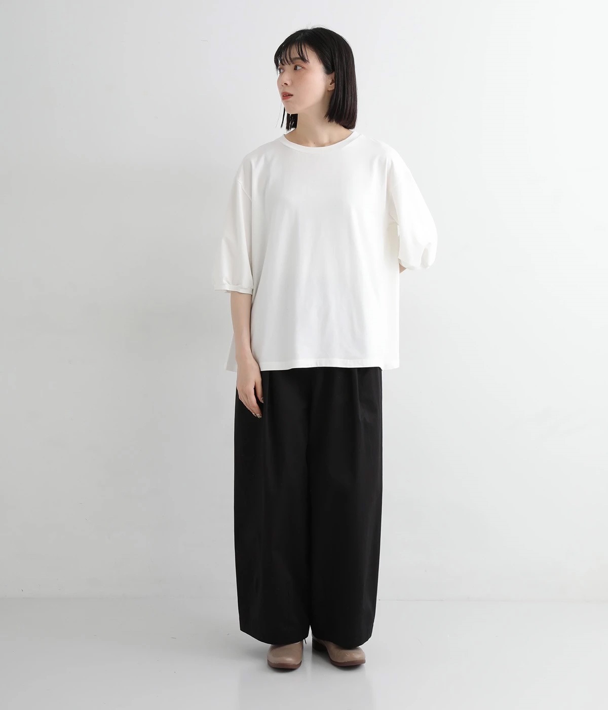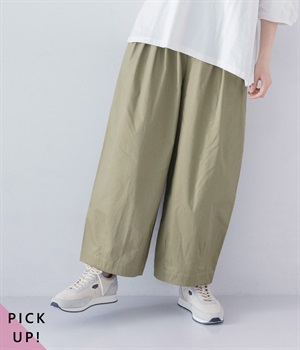 肌に張りつかず、風通しのよいワイドパンツ。