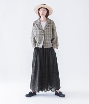 グレンチェックのジャケットを合わせて秋モードをオン。
