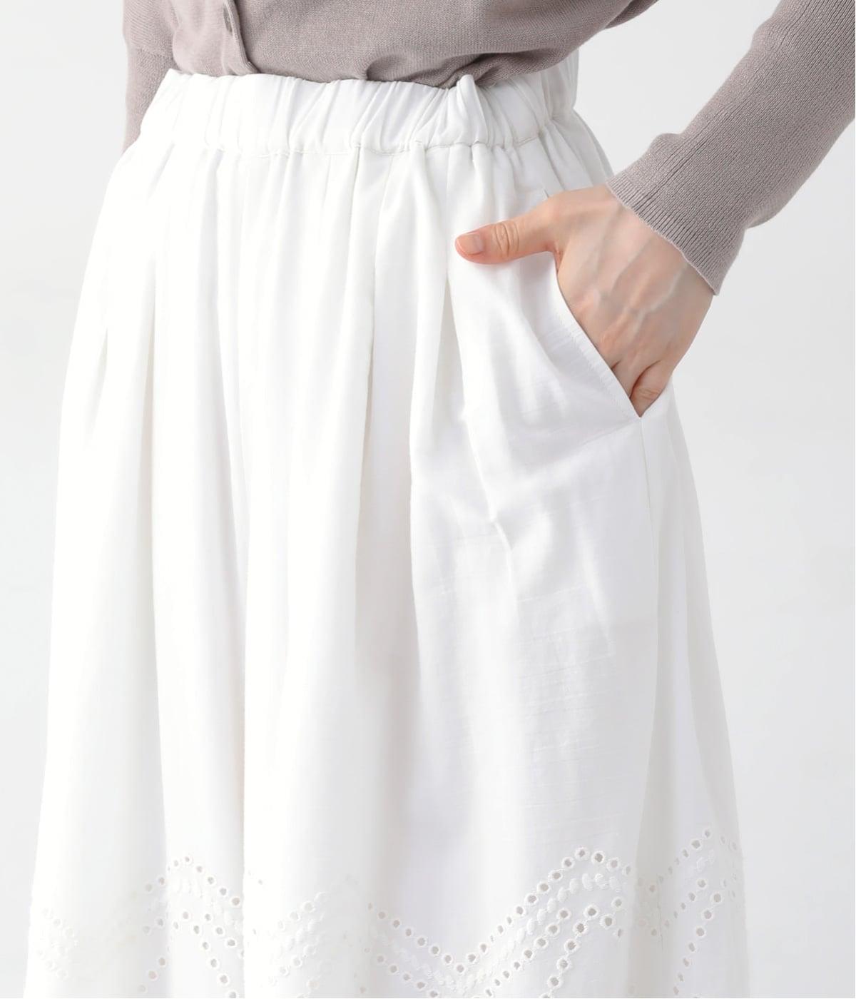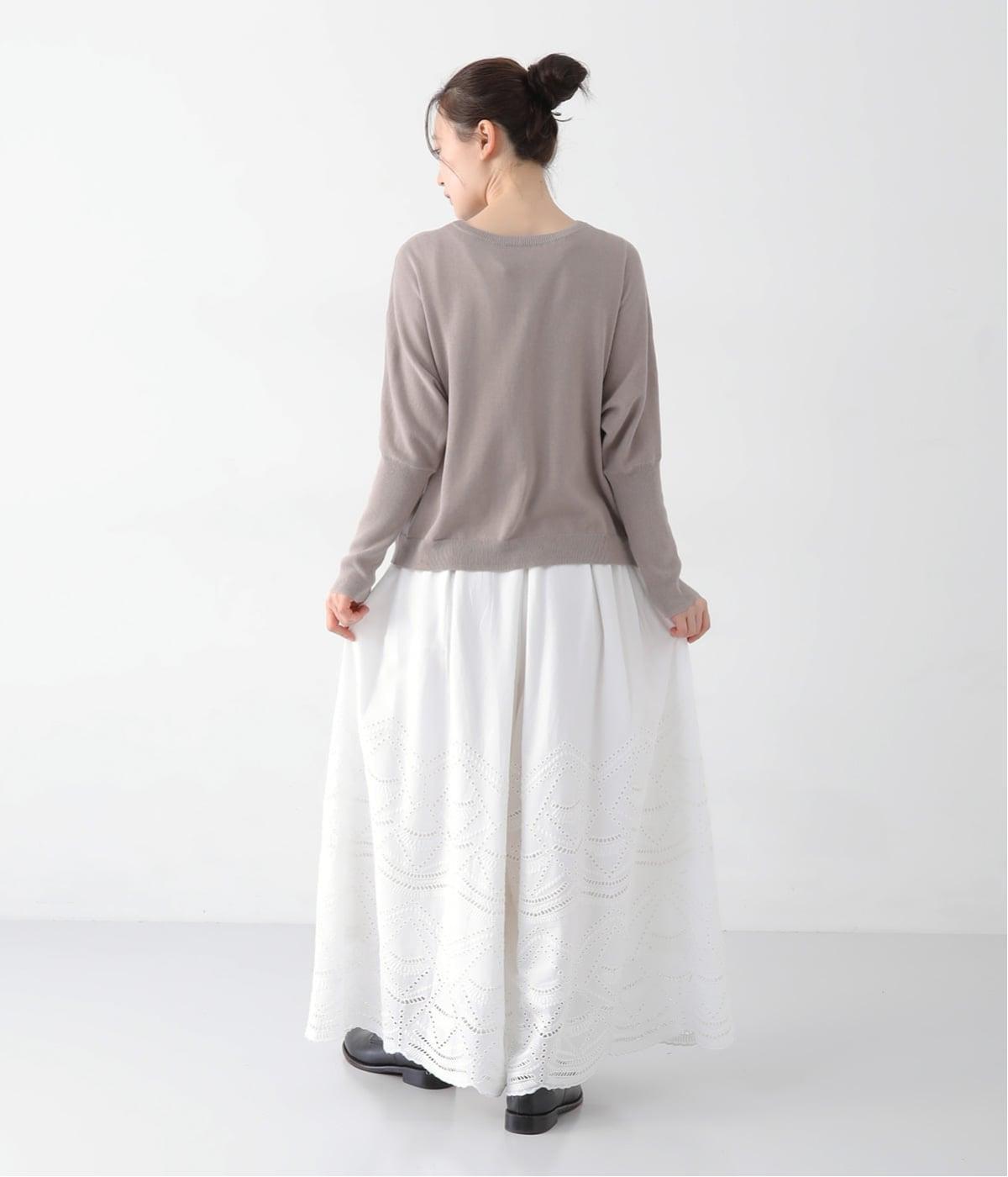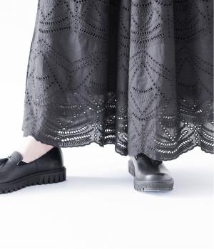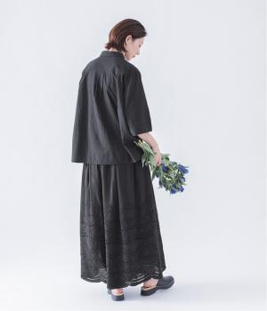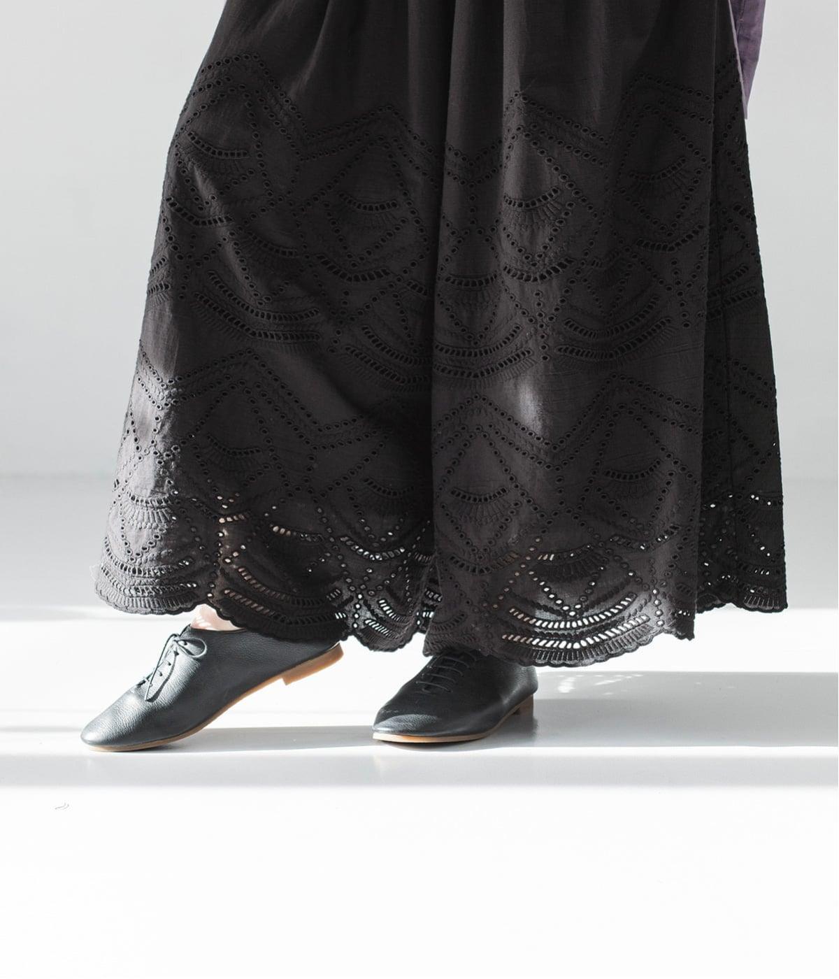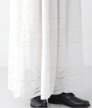 さらっと一枚でも穿いていただけるように裏地を付けています。裾ギリギリまでの長さではなく、カットワークレースの透け感が楽しんでいただけるような長さに。