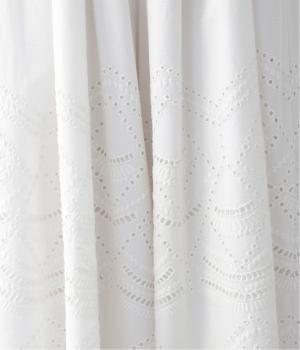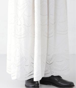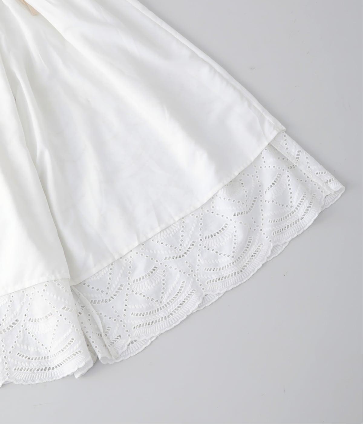 カットワークレースを贅沢にあしらい、裾は半円の縁取りが目を惹くスカラップに。ワンピースを重ね着したときに、裾からちらっと覗かせるのがポイントです。