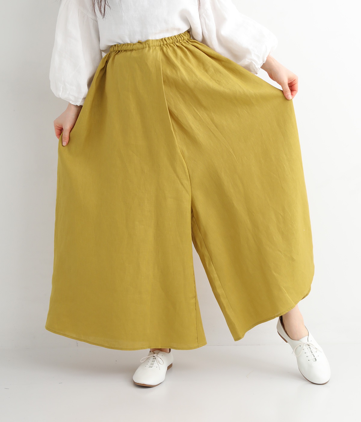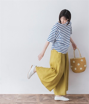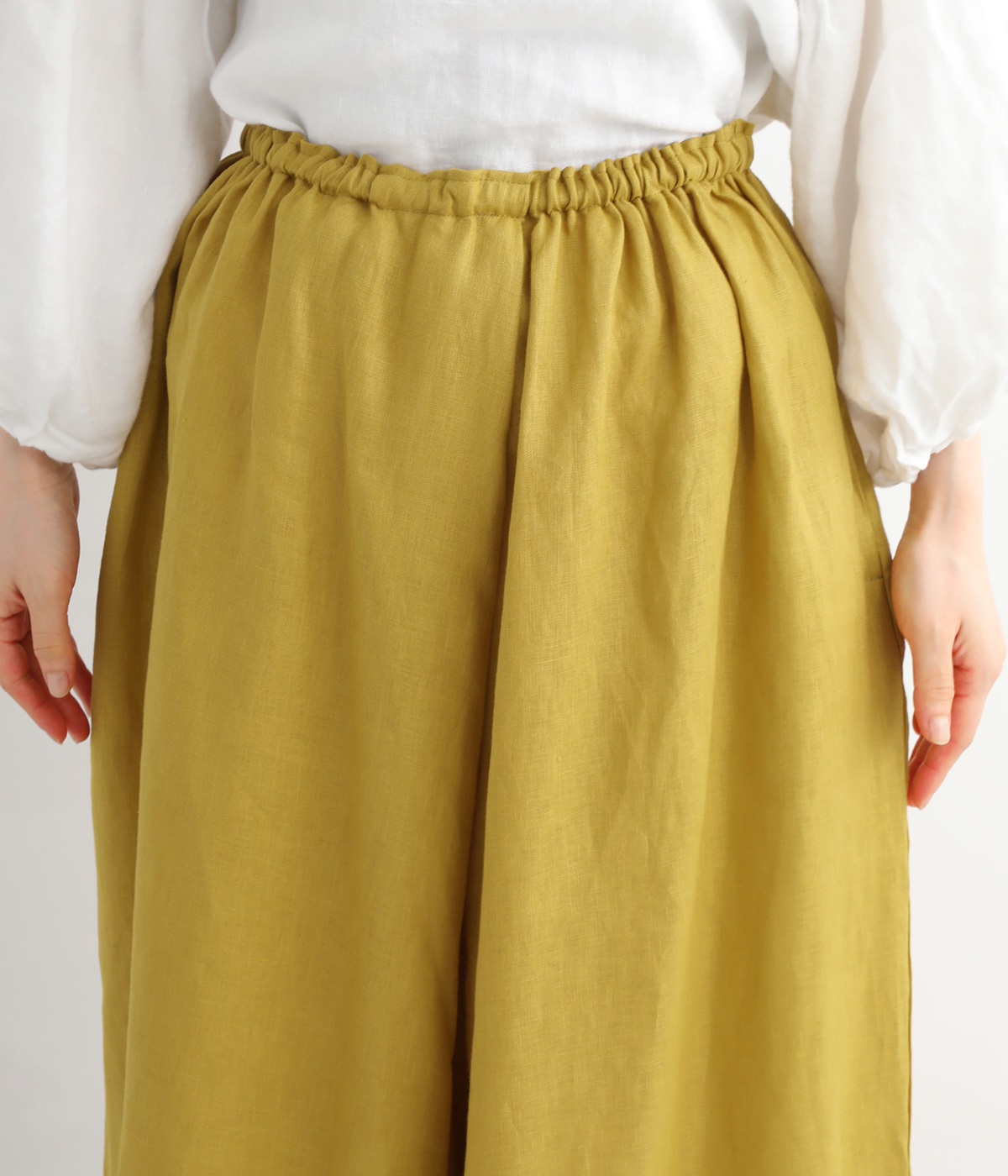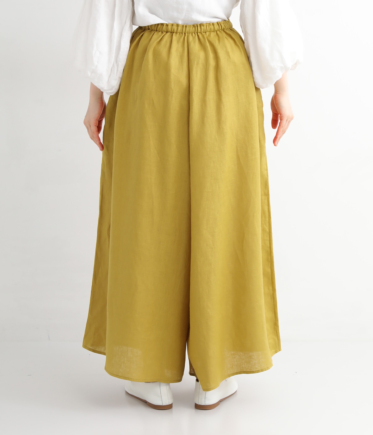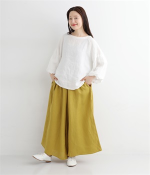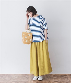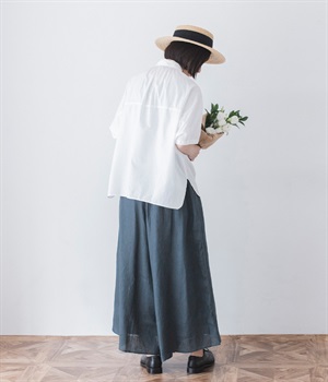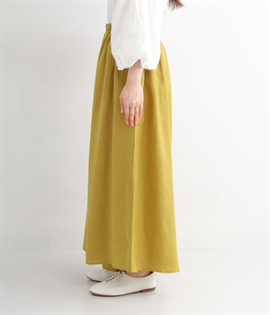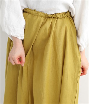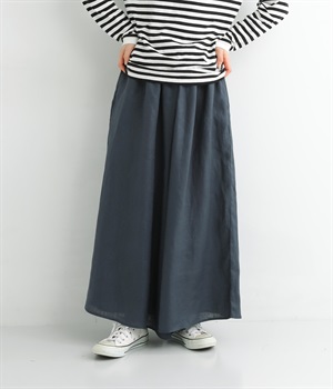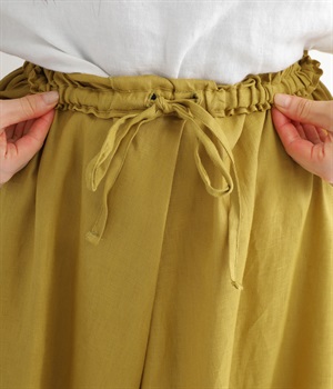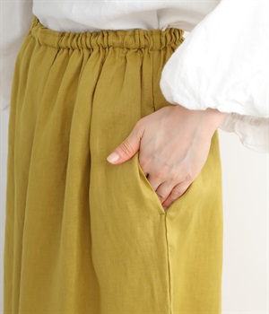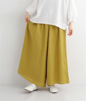 【素材】品のいい光沢とシャリッとした手触りが心地いいリネン素材は、風通しがよく、軽いはき心地を叶えます。はりつきにくく、肌に触れた時もさわやか。リラックスムードをアシストする気持ちのいい生地感です。【デザイン】スカート見えするほどボリューミーなワイドシルエットで、歩くたびに裾がひらりと揺らめき、周囲の視線をキャッチします。ウエストは伸びやかでフィット感のある総ゴムに、調整可能なドロストコードをあしらいました。
