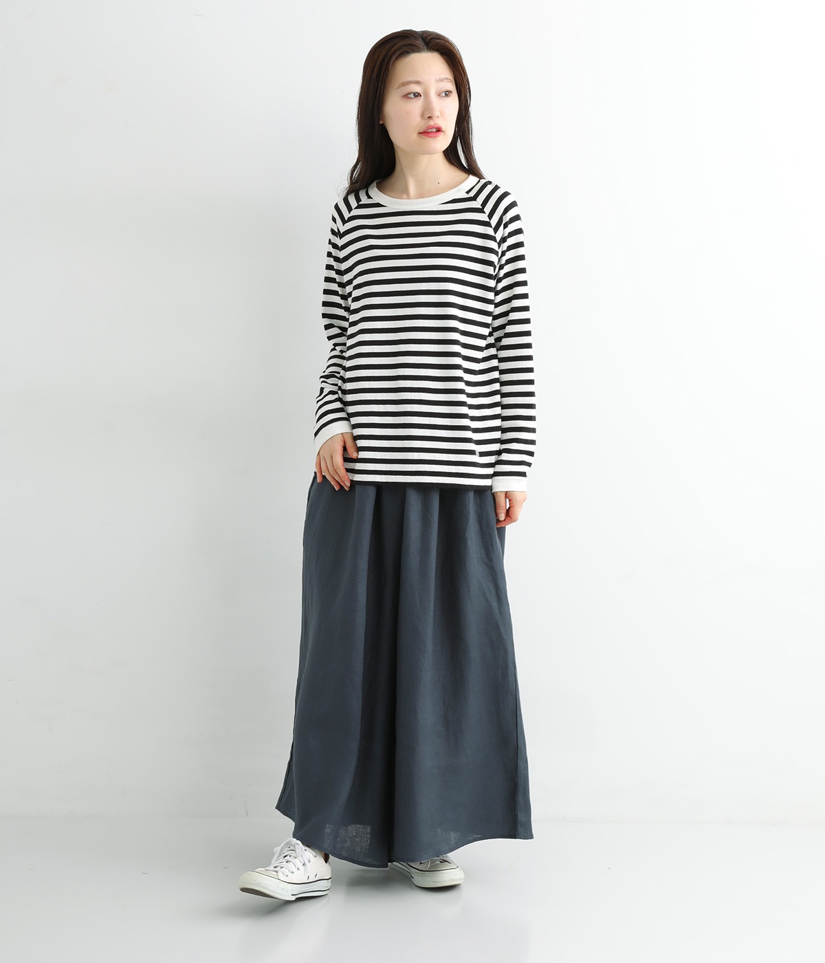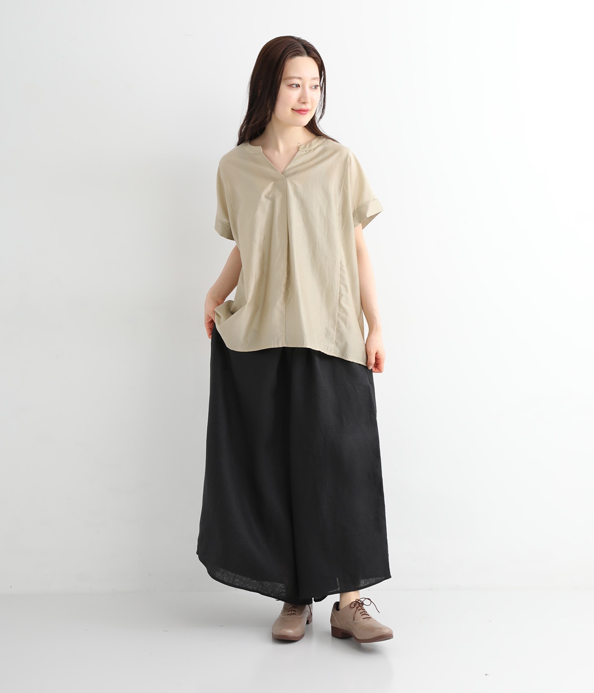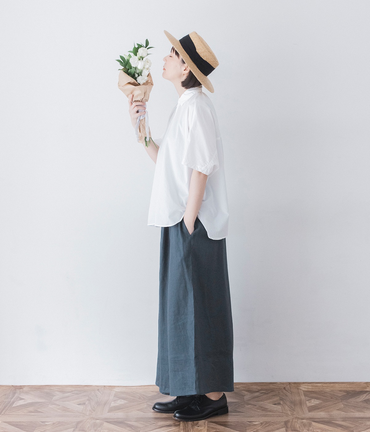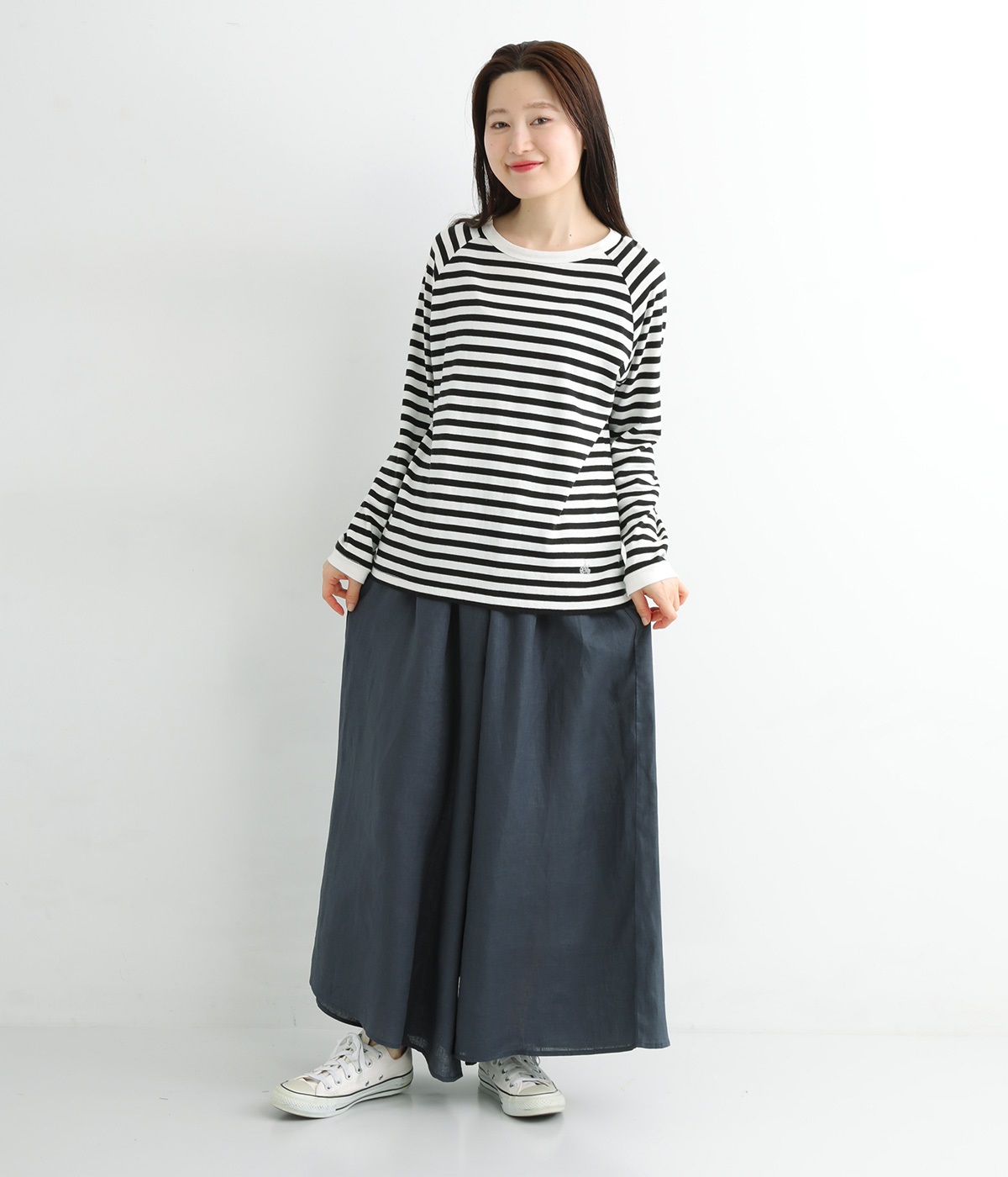【素材】品のいい光沢とシャリッとした手触りが心地いいリネン素材は、風通しがよく、軽いはき心地を叶えます。はりつきにくく、肌に触れた時もさわやか。リラックスムードをアシストする気持ちのいい生地感です。【デザイン】スカート見えするほどボリューミーなワイドシルエットで、歩くたびに裾がひらりと揺らめき、周囲の視線をキャッチします。ウエストは伸びやかでフィット感のある総ゴムに、調整可能なドロストコードをあしらいました。