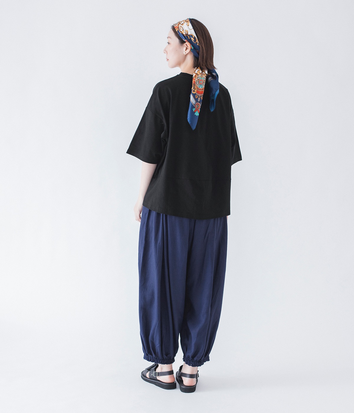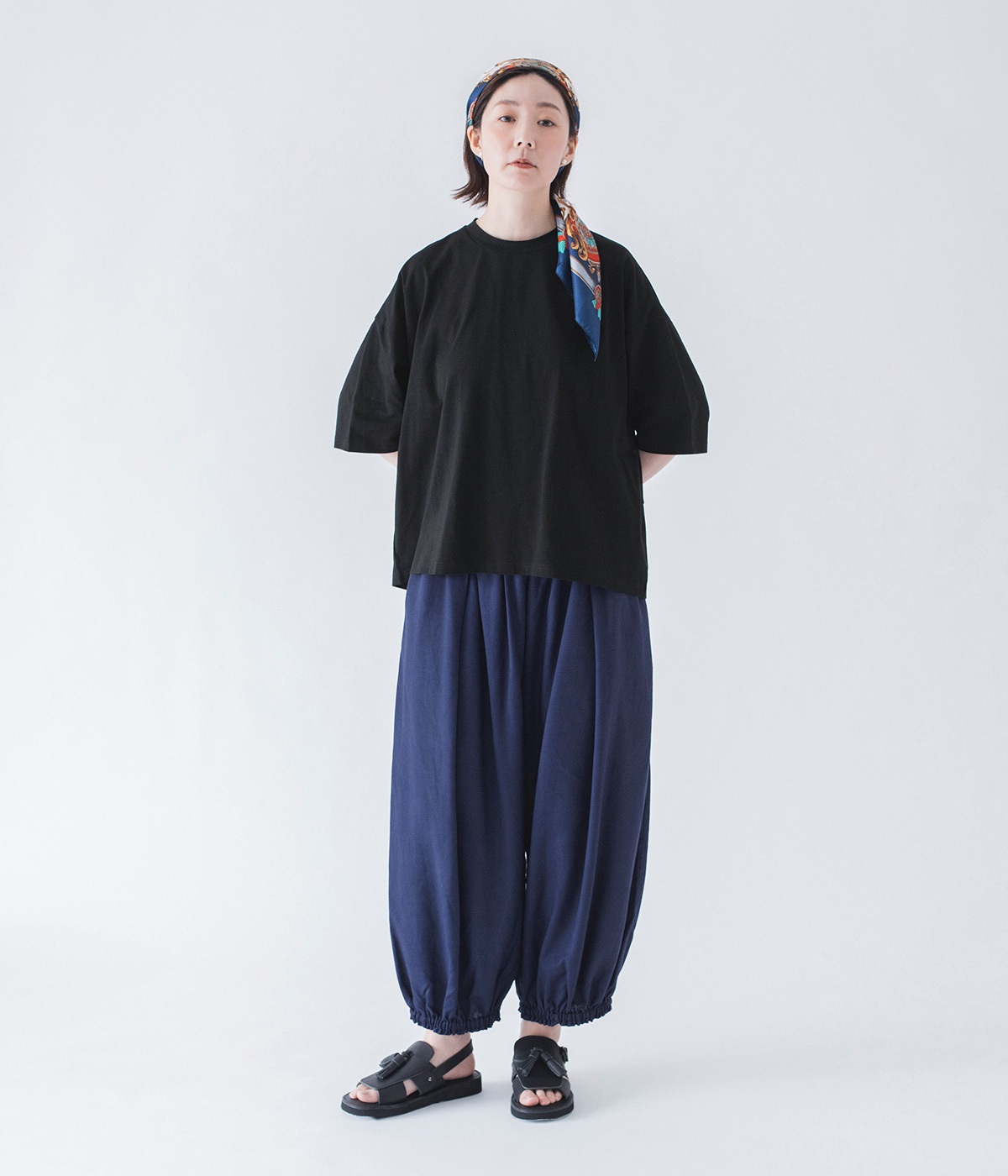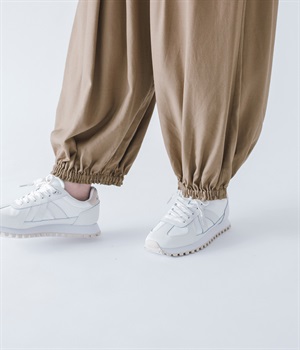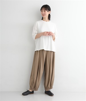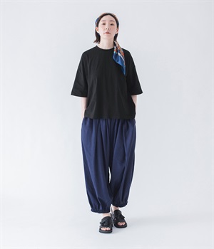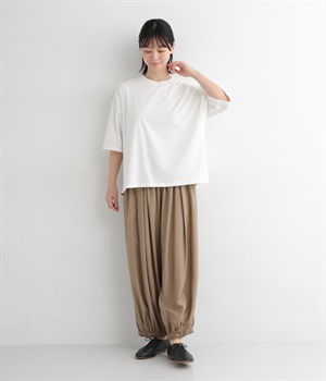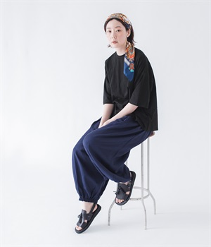 脚のラインを拾わないゆったりサイズで、動きやすさも抜群。