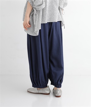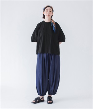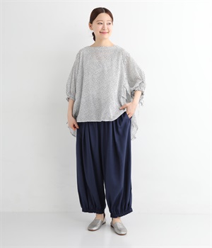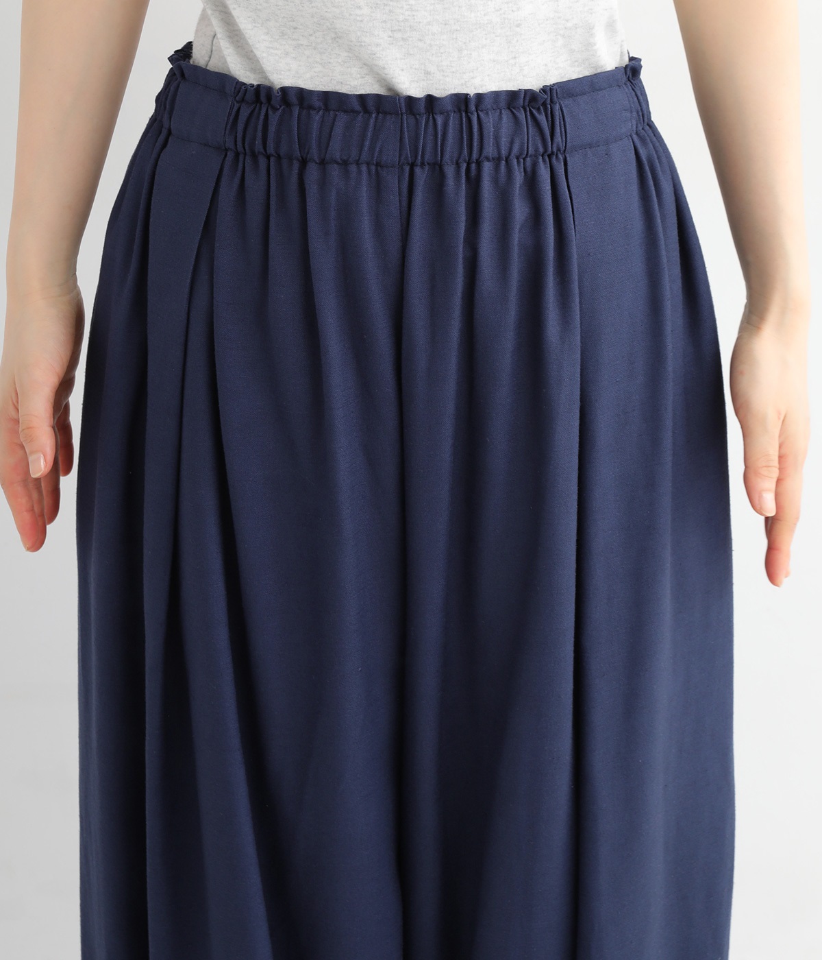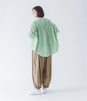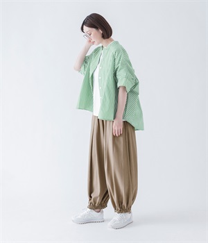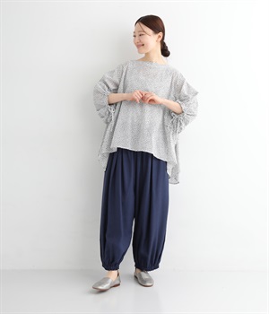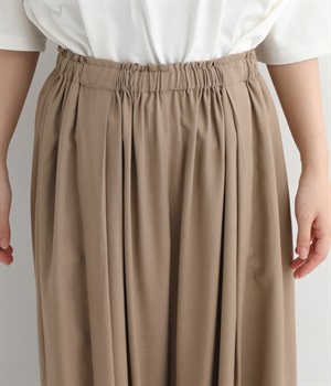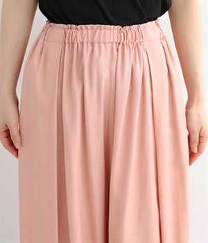 暑い夏にぴったりの軽さはもちろん、なめらかで落ち感のある生地がポイント。歩く度に揺れる、たっぷりギャザーが目を惹きます。