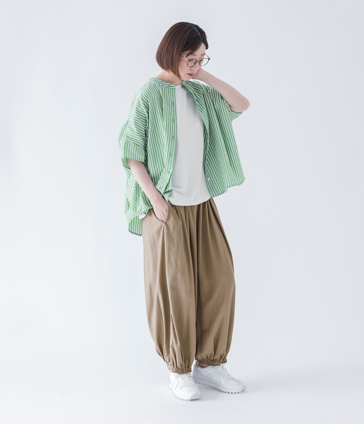 Tシャツでラフに、ブラウスでちょっとかっちり。いろいろなシーンで活躍します。
