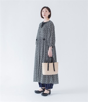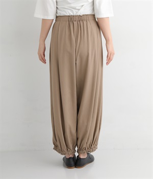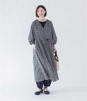 裾にギャザーを入れて、ふんわり立体感のあるシルエットに。裾が地面につかないので、小柄な方でも使いやすいデザインです。