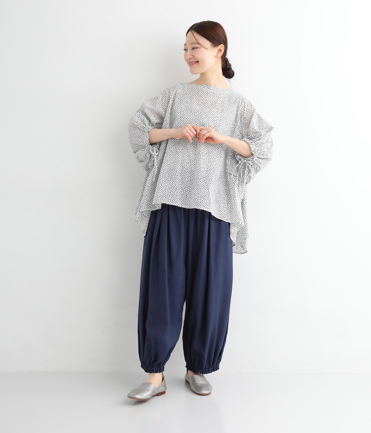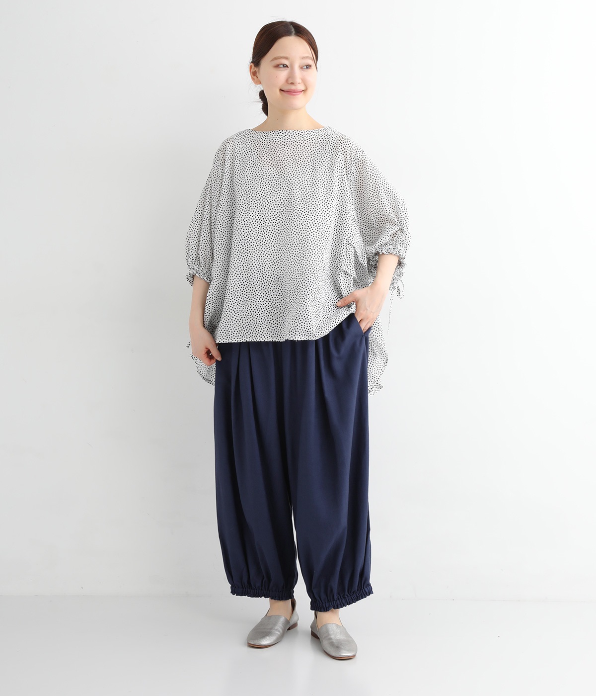 小柄さんでもバランスのとりやすい裾ギャザー