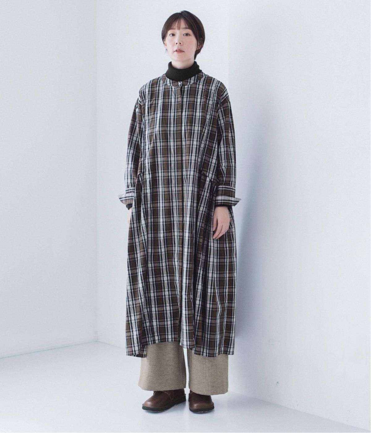 チェックのワンピースと合わせると秋冬らしい季節感のあるコーデに。