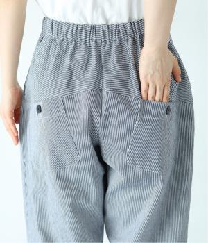 ウエストからヒップにかけてゆとりを持たせて裾に向かって細くしたテーパードパンツ。はき心地のよさとすっきり見えを叶えるシルエットです。後ろに大きいアウトポケットをつけてヒップまわりをカバー。ウエストには心地よいフィット感の平ゴムをぐるりと通しています。