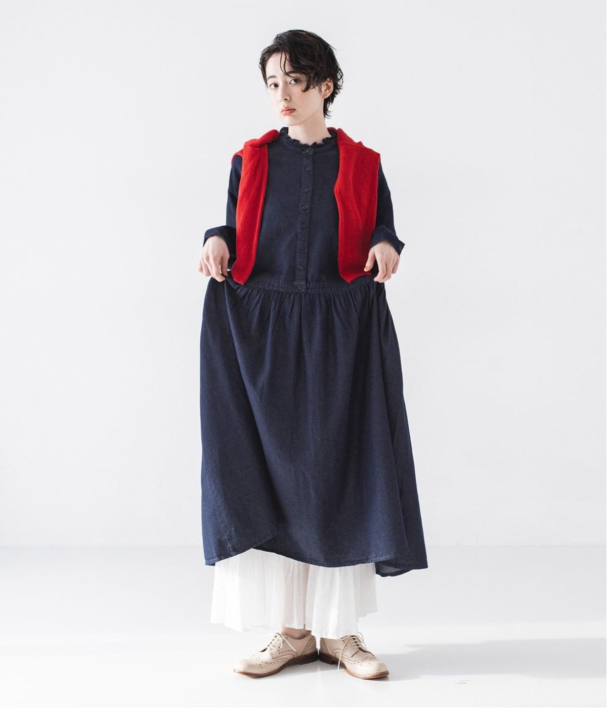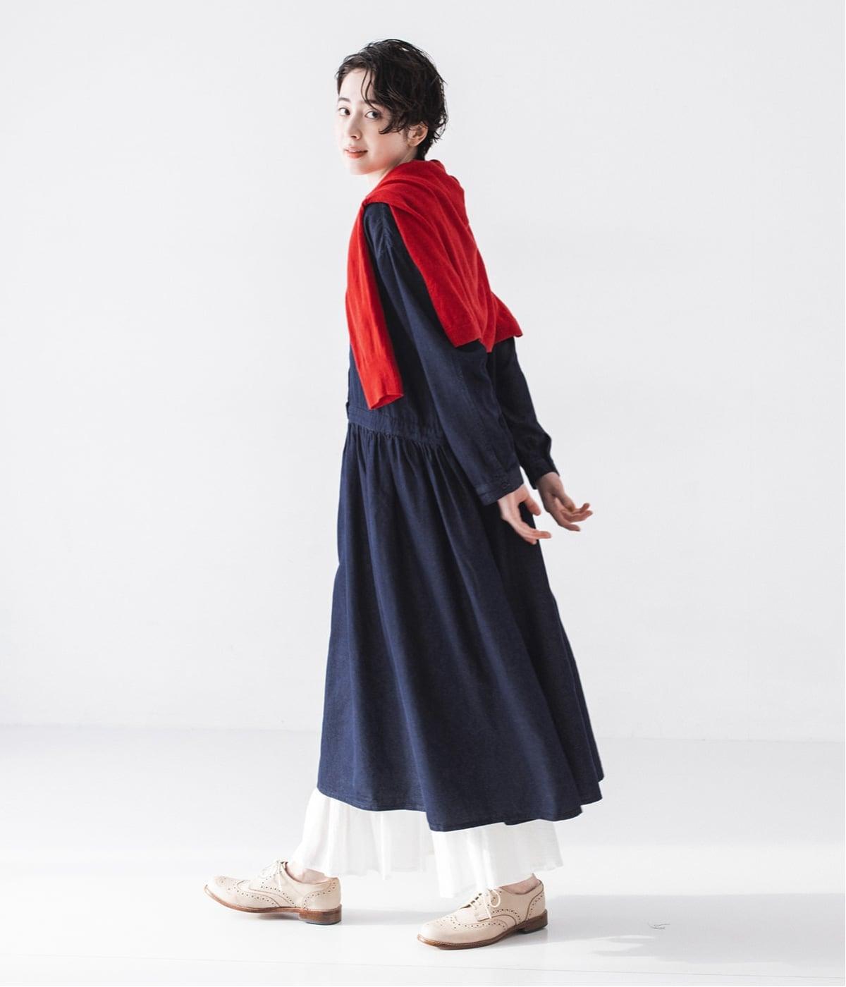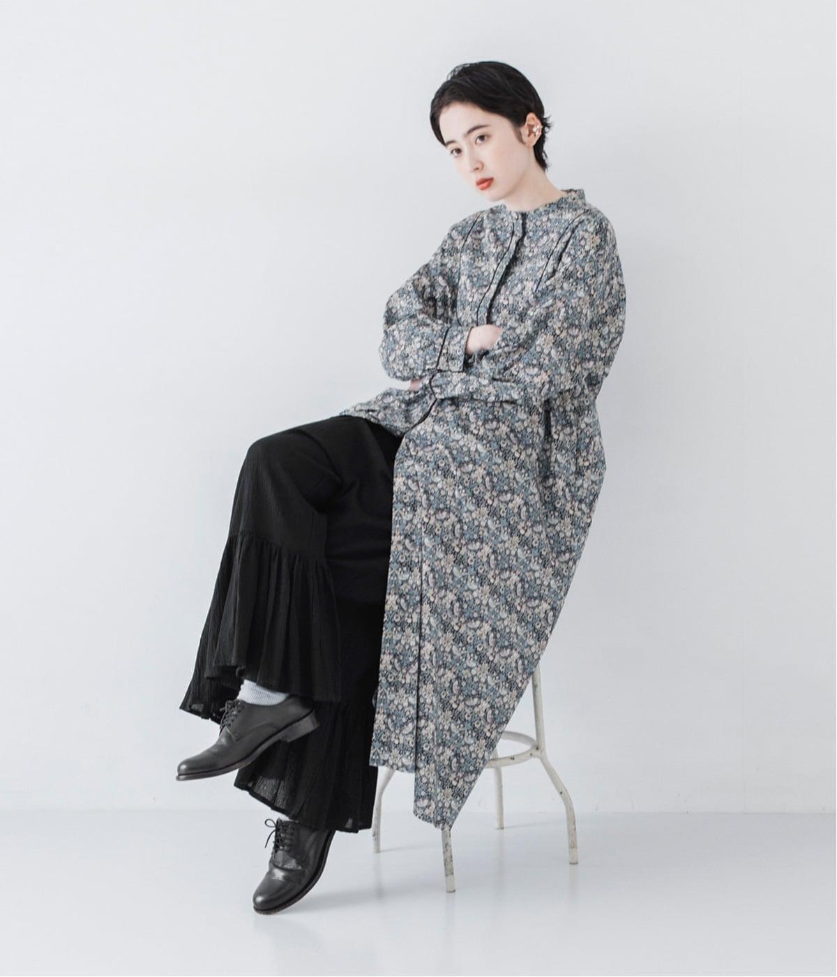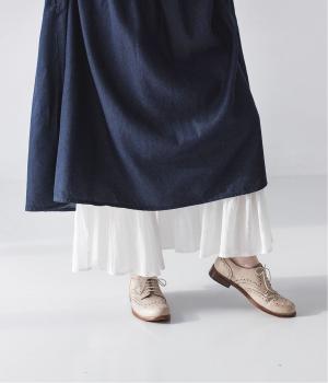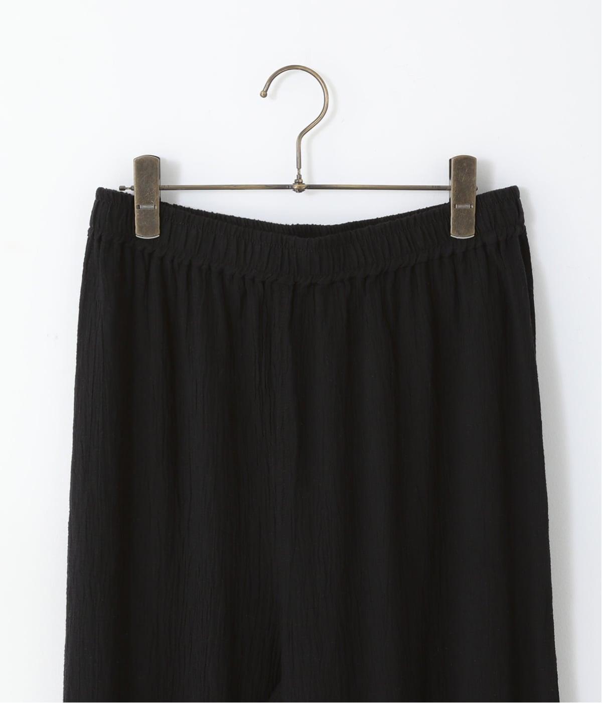裾に切り替えとギャザーを入れた、女性らしいレイヤードスタイルをたのしめるぺチパンツ。パンツの足さばきの良さはそのままに、スカート見えするボリューム感を出しました。ウエストは一周ゴムでストレスフリーのはき心地です。