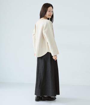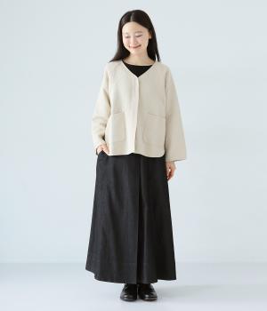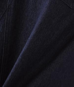 カジュアルに転びすぎない上品な光沢のあるデニム生地を使用。適度なハリ感とやわらかさを持ちあわせた軽やかなコットンブレンド素材で、オールシーズン着用できます。