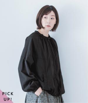 ジップを上げると、スウェットのような雰囲気で、一枚でおしゃれが完成。