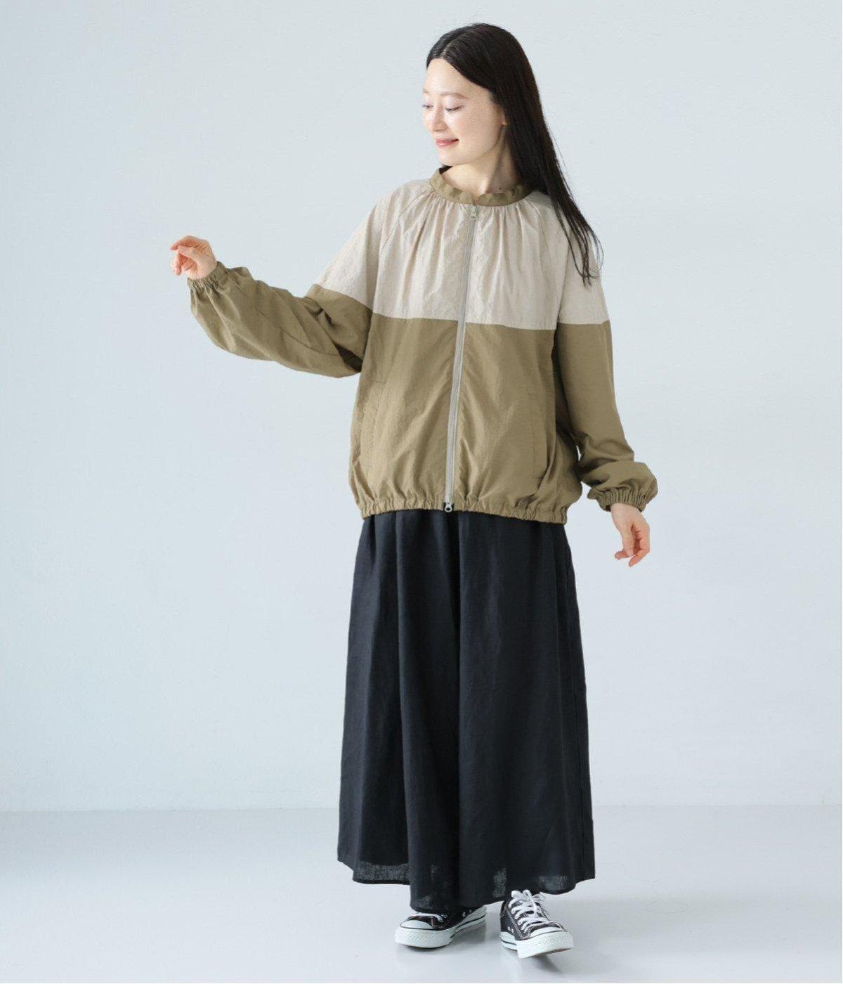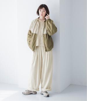 カジュアルな印象のナイロンジャケットに、女性らしいエッセンスを加えた大人の普段着にちょうどいいアウター。
