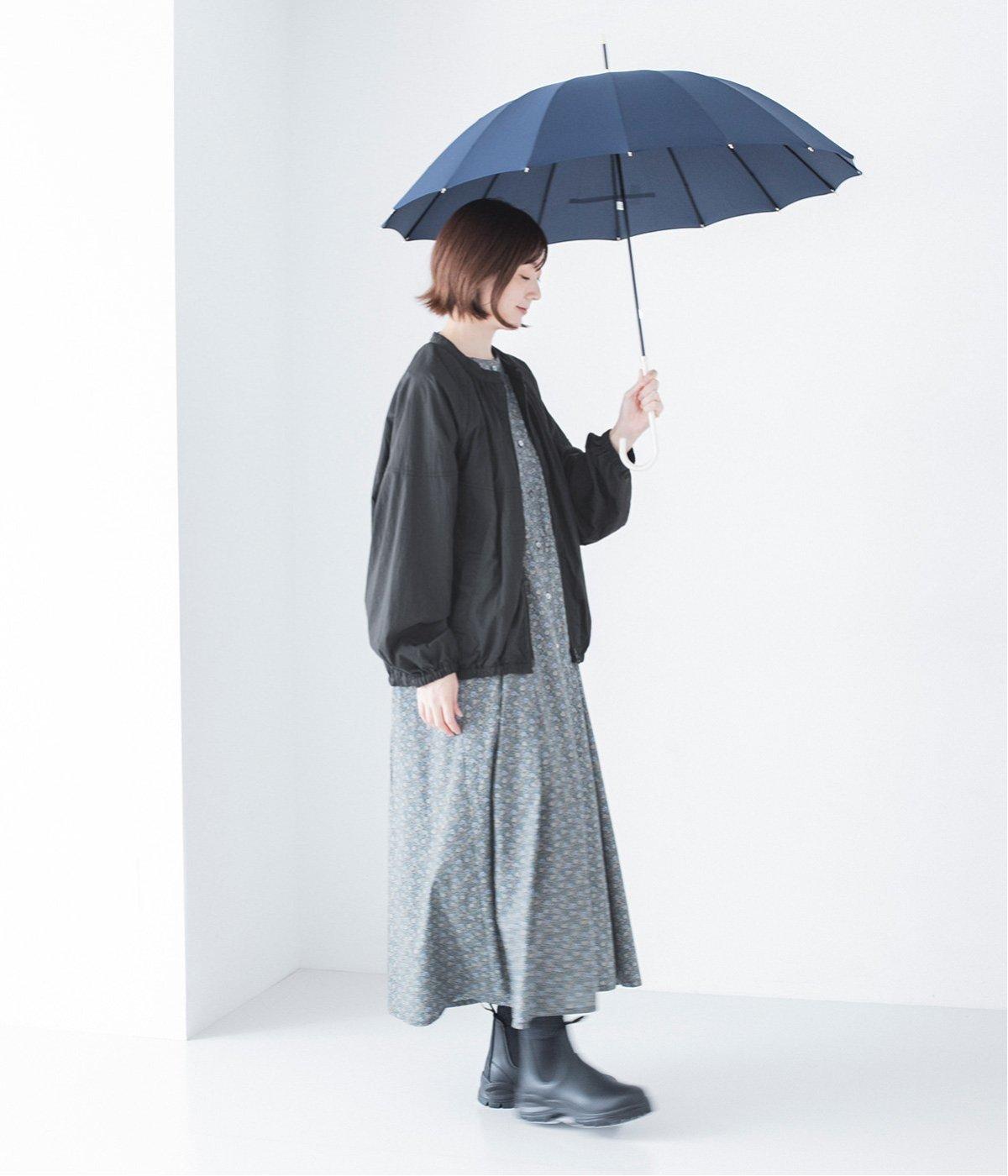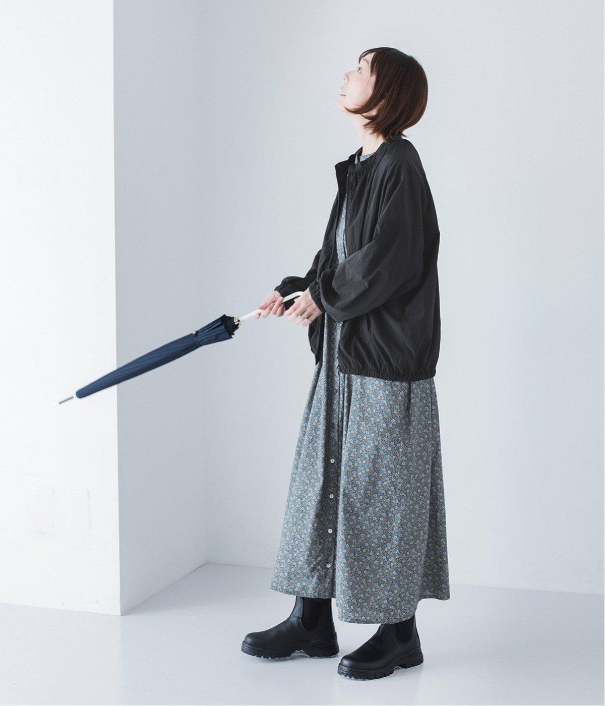 ブーツや傘などレイングッズを合わせたコーディネートもこなれた雰囲気に。
