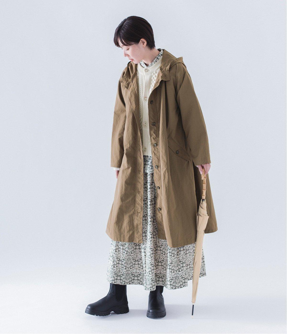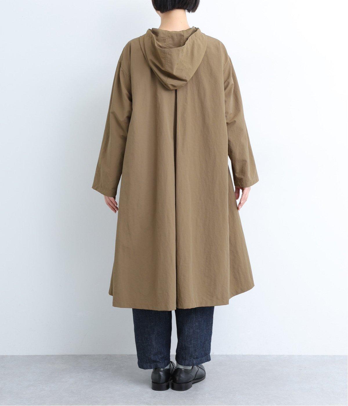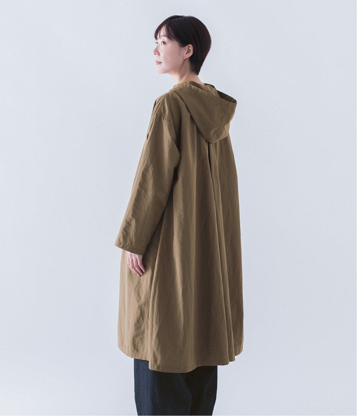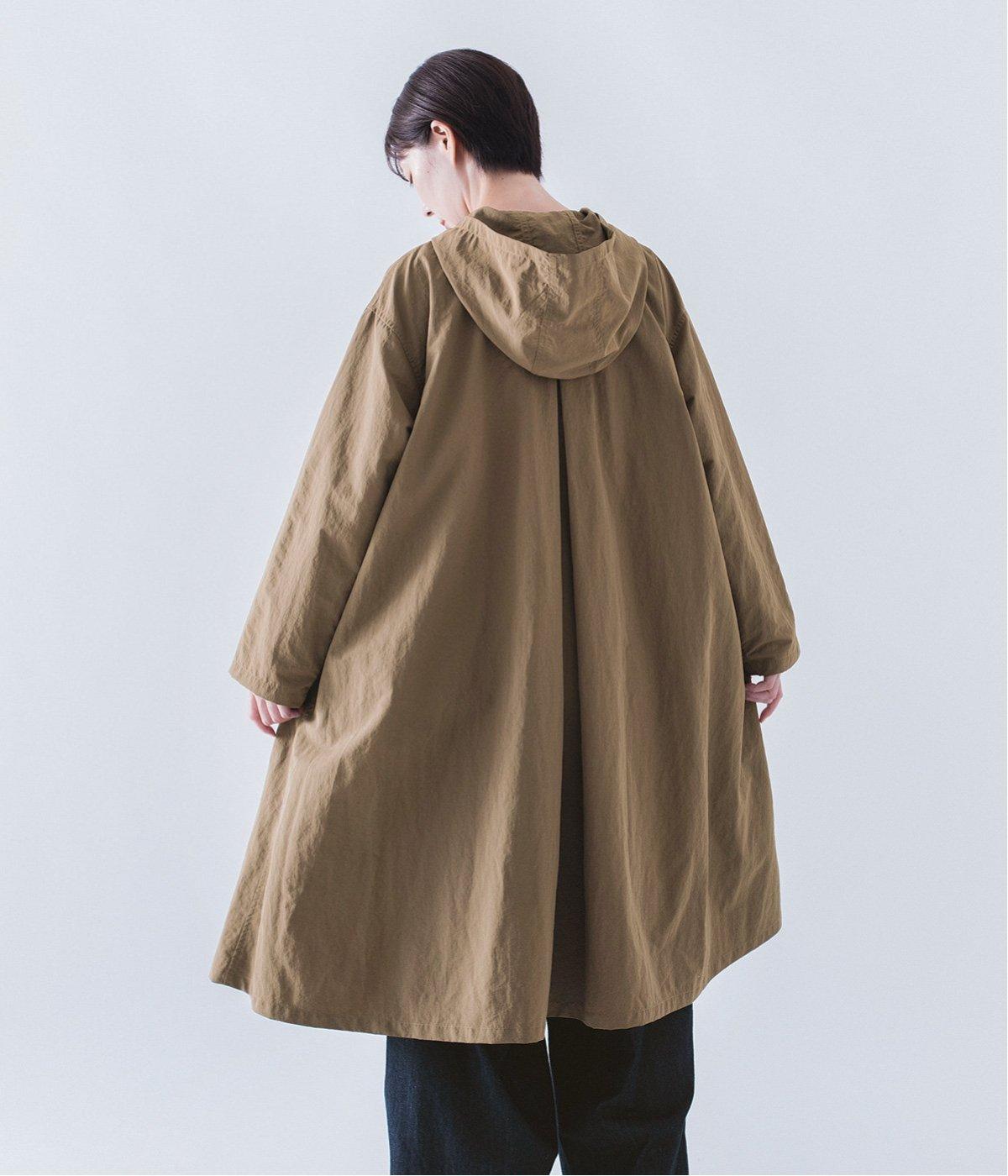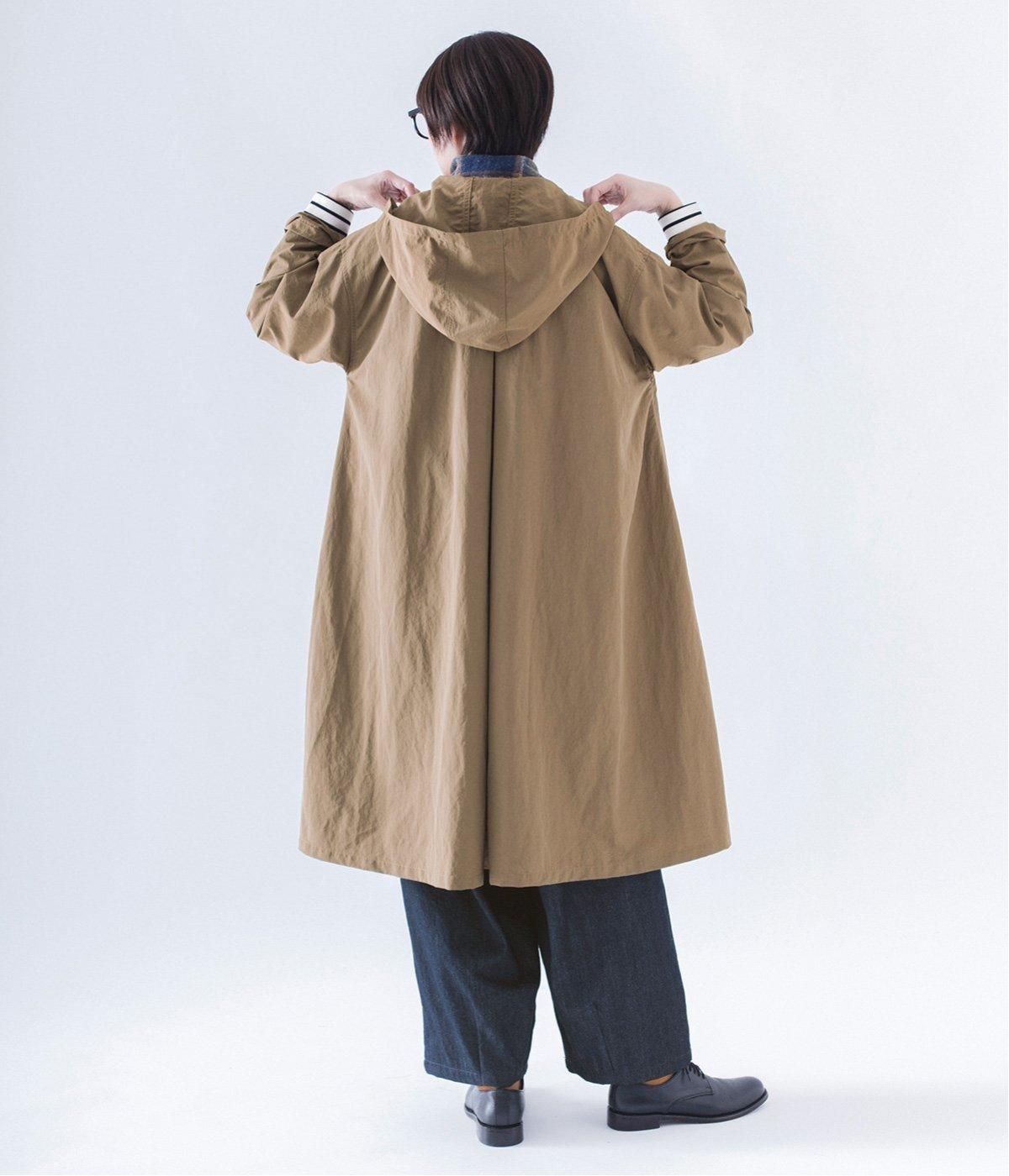 背中にタックを入れて、ふわっと広がるAラインのシルエットに。カジュアルなイメージのフードコートに、女性らしいエッセンスを加えています。