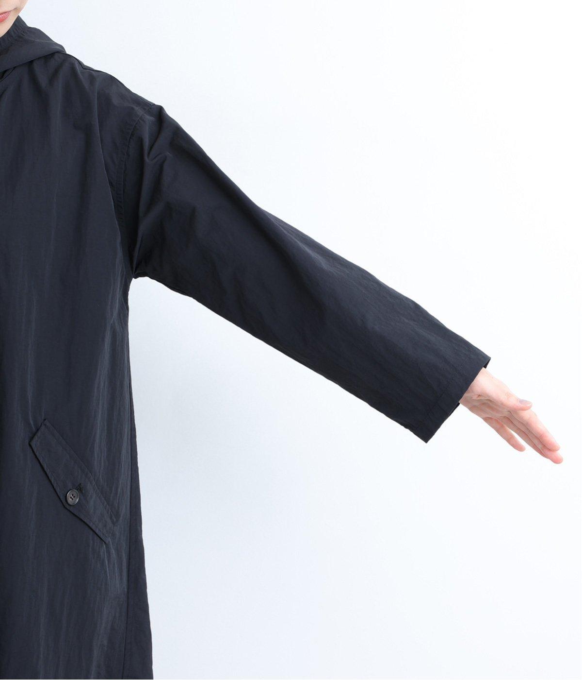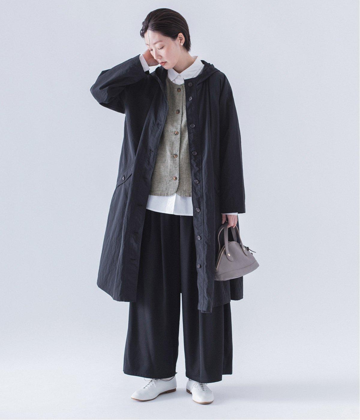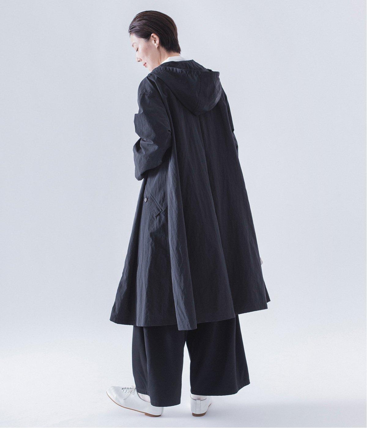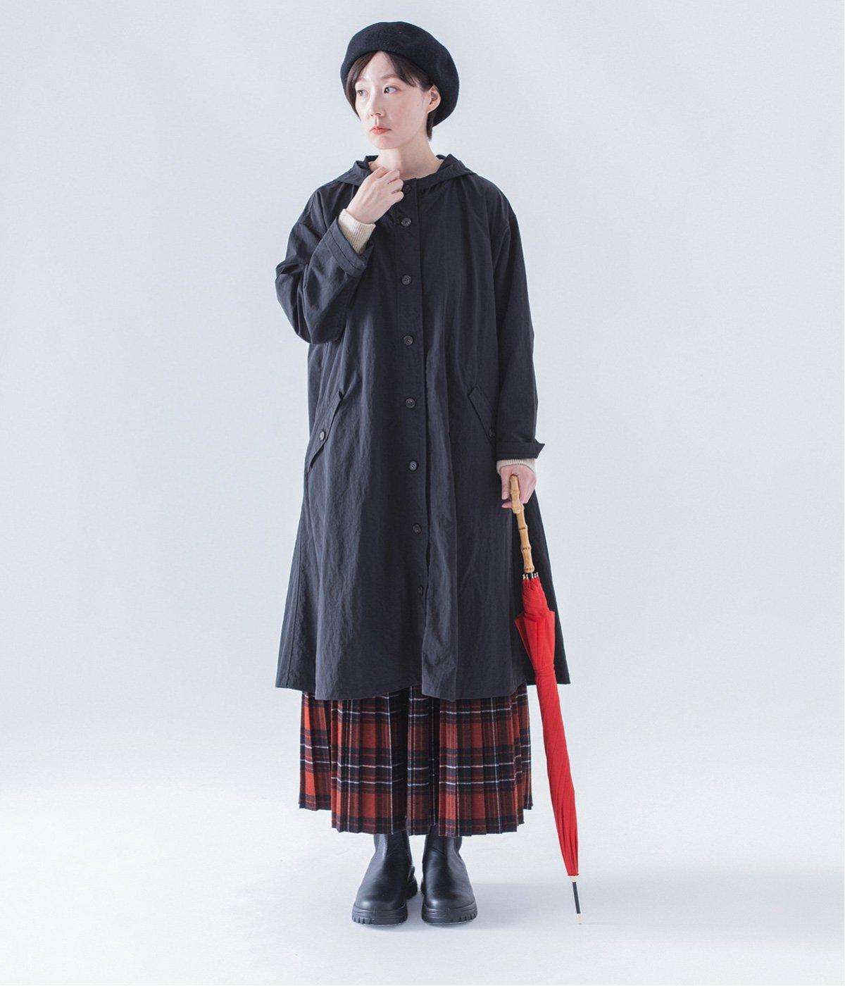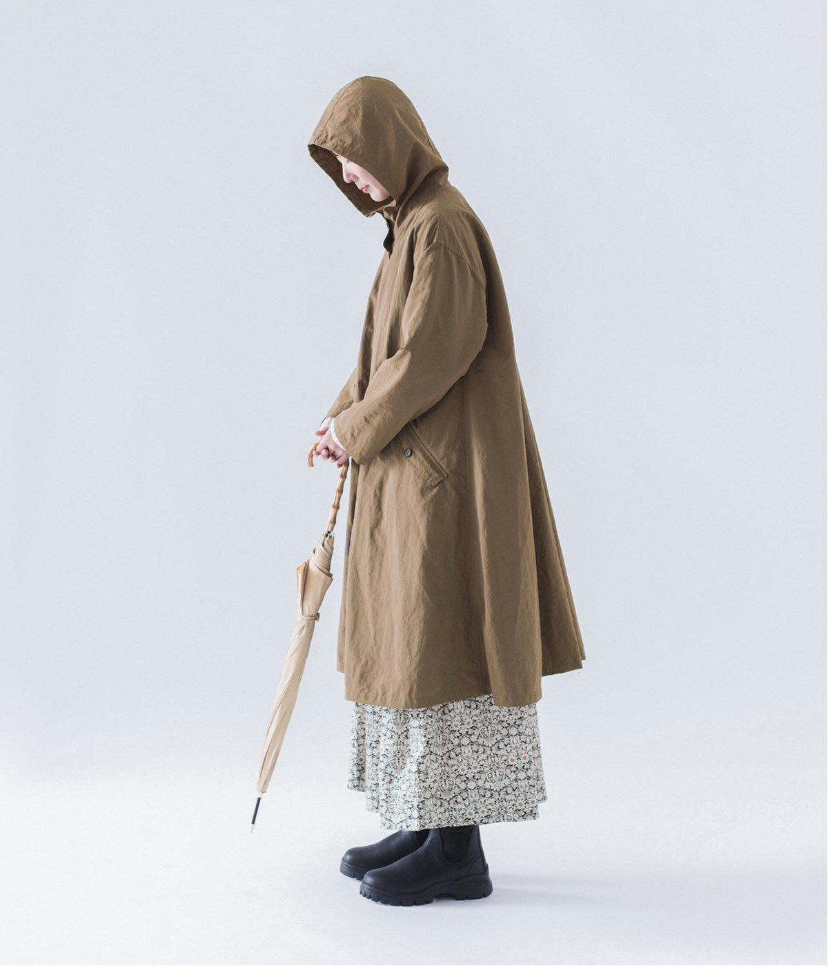 背中にタックを入れて、ふわっと広がるAラインのシルエットに。カジュアルなイメージのフードコートに、女性らしいエッセンスを加えています。