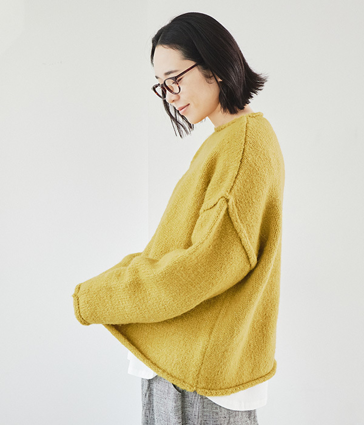 やや厚みがあり、ふっくらとソフトなウール混ニット