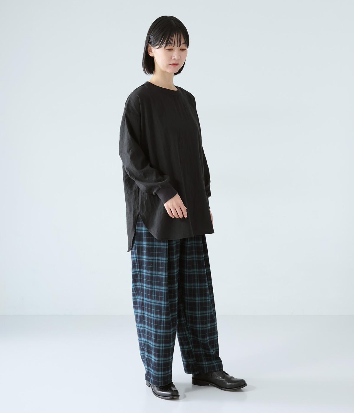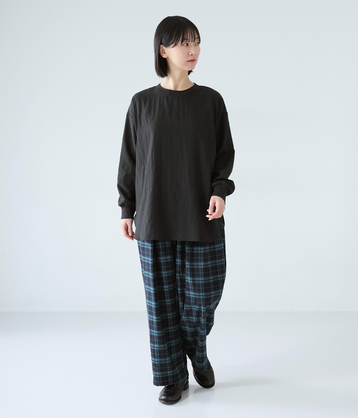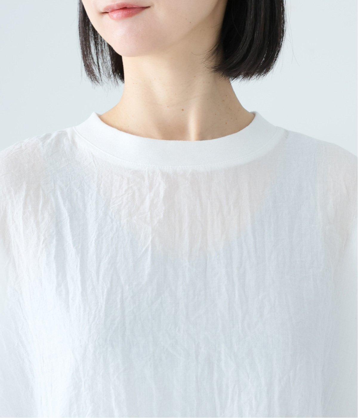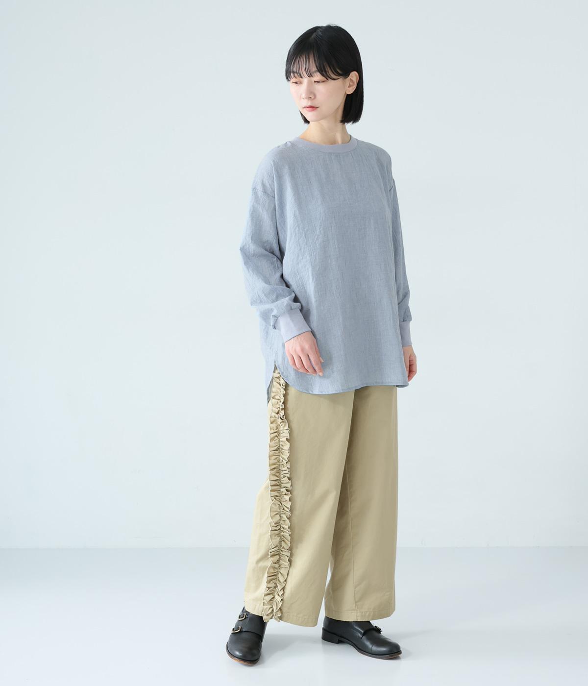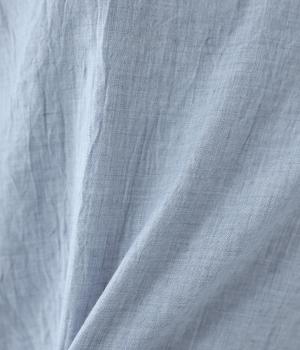 上品な透け感のあるとても軽やかな風合いのコットン混生地を使用しています。洗いざらしのようなシワ感がナチュラルなムードを演出。首まわりと袖口に伸縮性のあるリブをプラスしました。