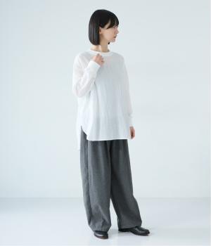 コーディネートを軽やかに仕上げる、ほんのり透け感のあるプルオーバー。襟ぐりと袖口にリブをつけてカジュアルな印象に仕上げました。前後差のある着丈と大きく曲線を描くヘムラインがポイントに。後ろネックの涙開きが着脱をアシストしてくれます。