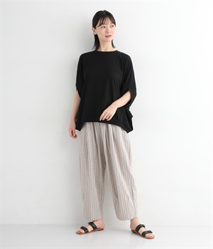 とてもやわらかで伸縮性に優れた天竺素材で仕立てました。薄手ながらも心地よい肉感があり、ストレスを感じることなく着用できます。