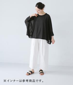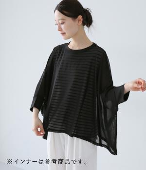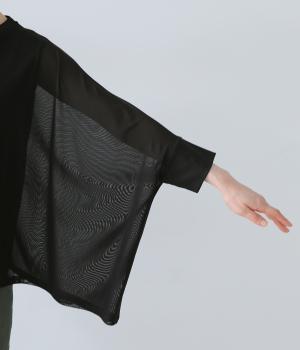 さらさらとしたとても目の細かいメッシュ生地を使用しています。通気性がよいのはもちろんのこと、体の動きを邪魔しない伸縮性が◎。ほんのりとした透け感が見た目にも上品で、コーディネートを軽やかに仕上げてくれます。