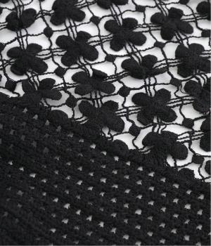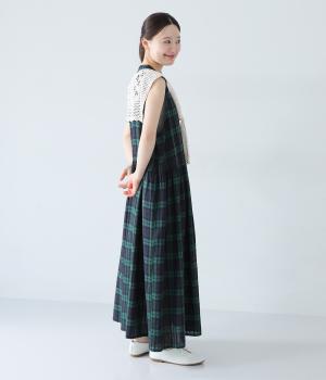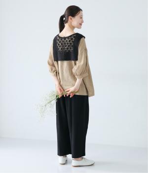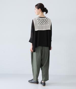 コットン糸を使用したふっくらとしたニット生地です。ほどよく肉感があるので、さまざまな素材のトップスに違和感なくなじみやすいのが◎。立体感のあるレースのような編み目がコーディネートに奥行きを与えてくれます。