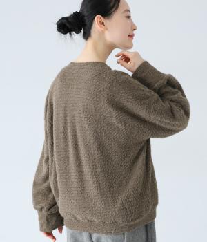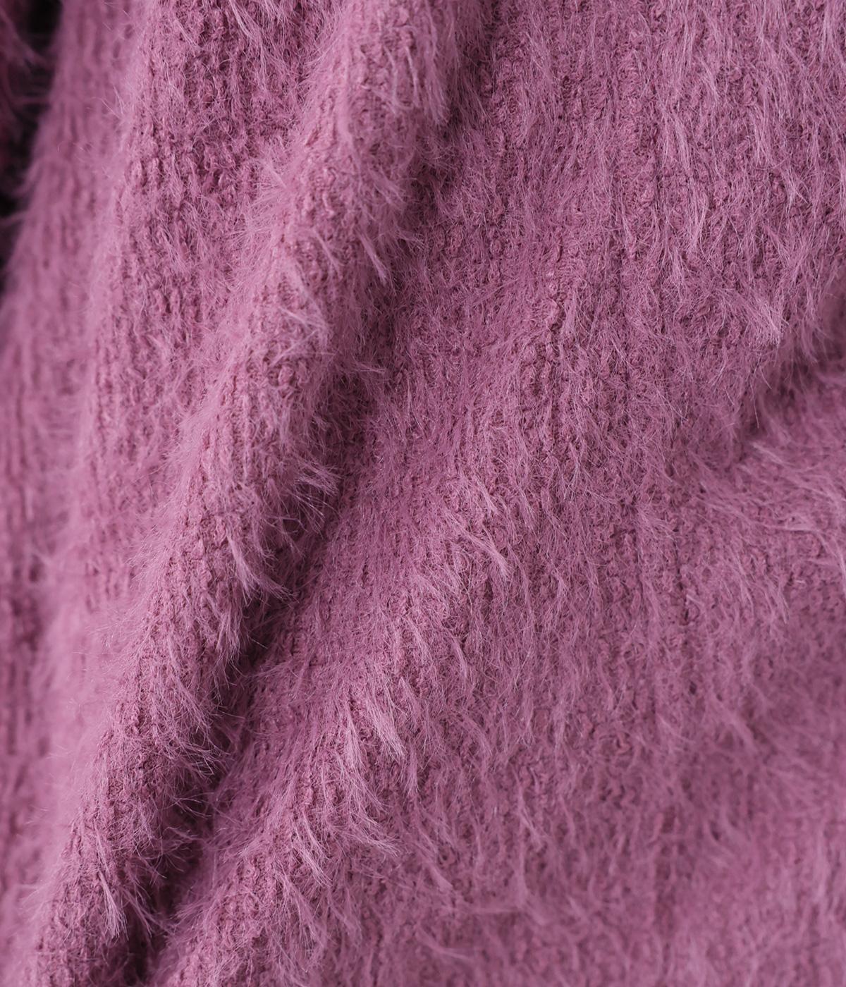 毛足の長いやわらかな肌触りのシャギーニット。とても軽くて伸びが良く、心地よい着用感を叶えてくれます。薄手なので、寒い時期には上からアウターを羽織りやすいのもうれしいポイントです。
