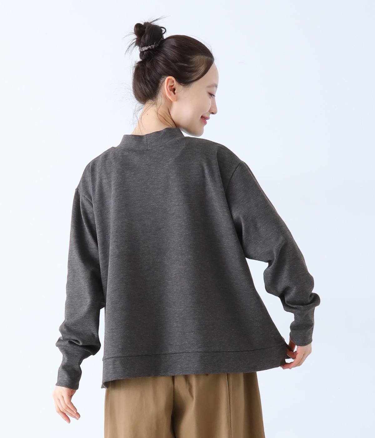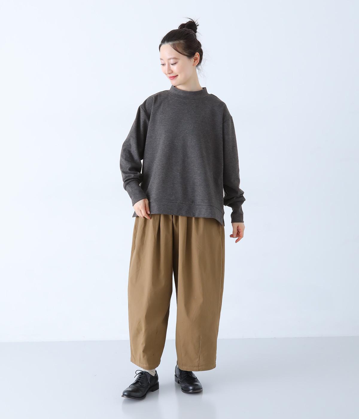 首元をあたためながらもすっきりと見せる、低めに立ち上げたネックラインが特徴のカットソー。身幅にゆとりを持たせ、ラフな着用感にこだわりました。裾両サイドにはスリットを入れて横姿のアクセントに。シャツやワンピースと合わせたインナー使いがおすすめです。