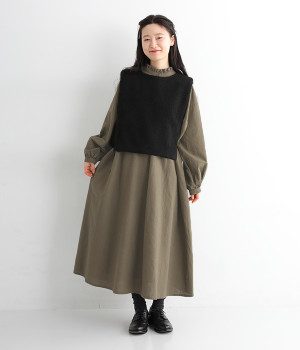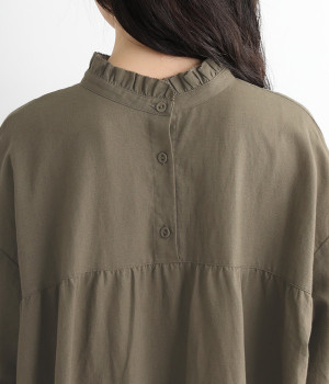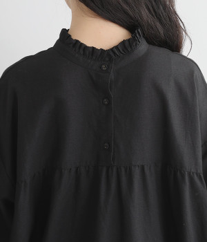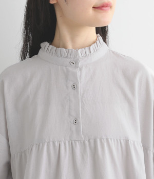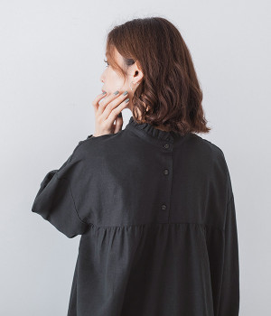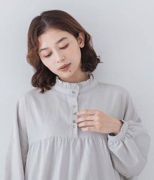 バンドカラーにフリルを添えて顔まわりに甘いポイントを