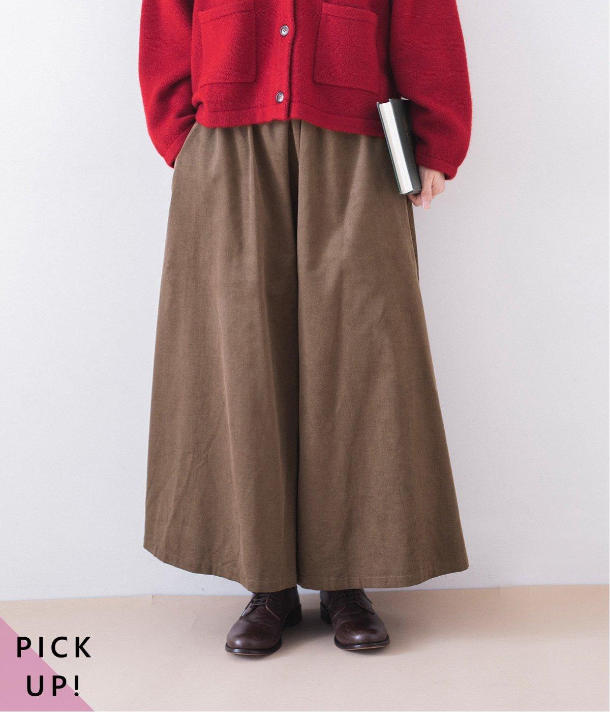 普段、ブラウンを着ない方でも、お顔から遠いボトムスからであれば、気軽に取り入れていただけます。