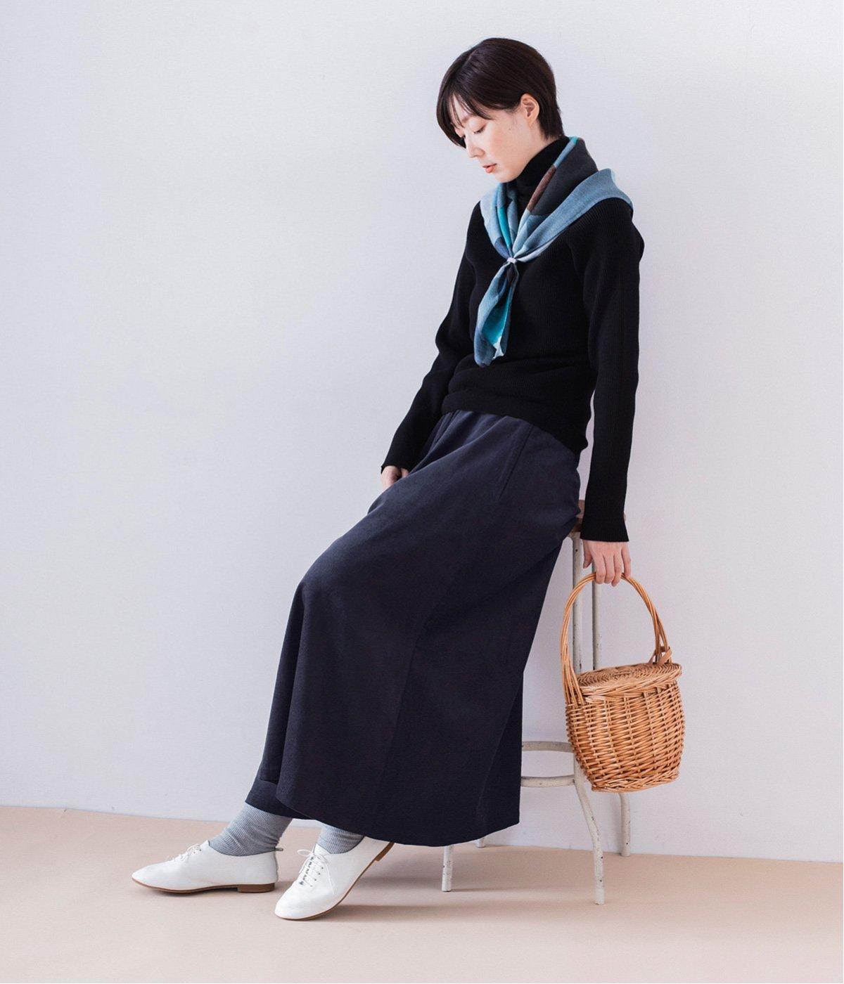 黒のタートルとのスタイリングは絶妙なネイビーの色味が引き立ち、シックな印象に。