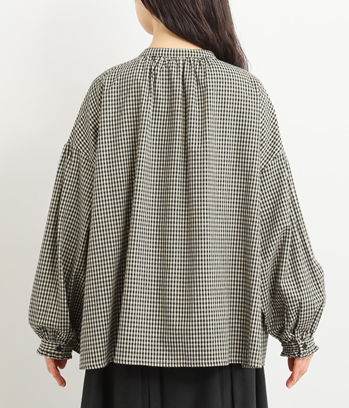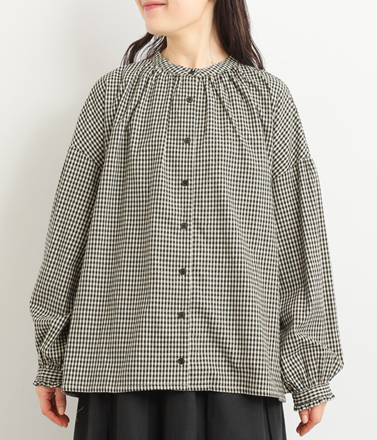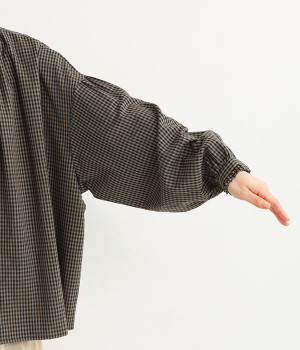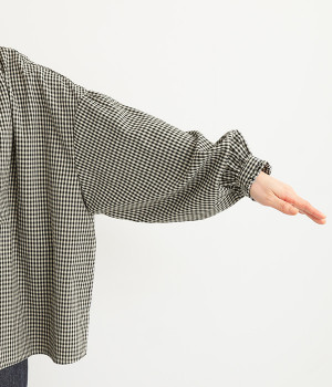 ふんわり感を作る、襟まわりや袖の切り替えのギャザー