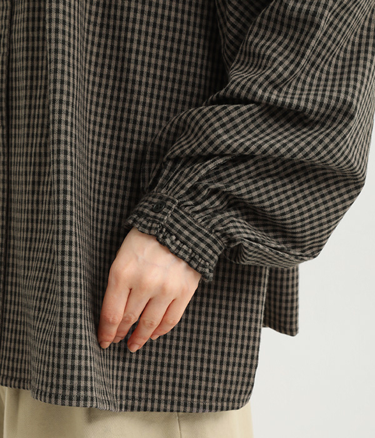 カフスに控えめなフリルをあしらい、手元を愛らしく