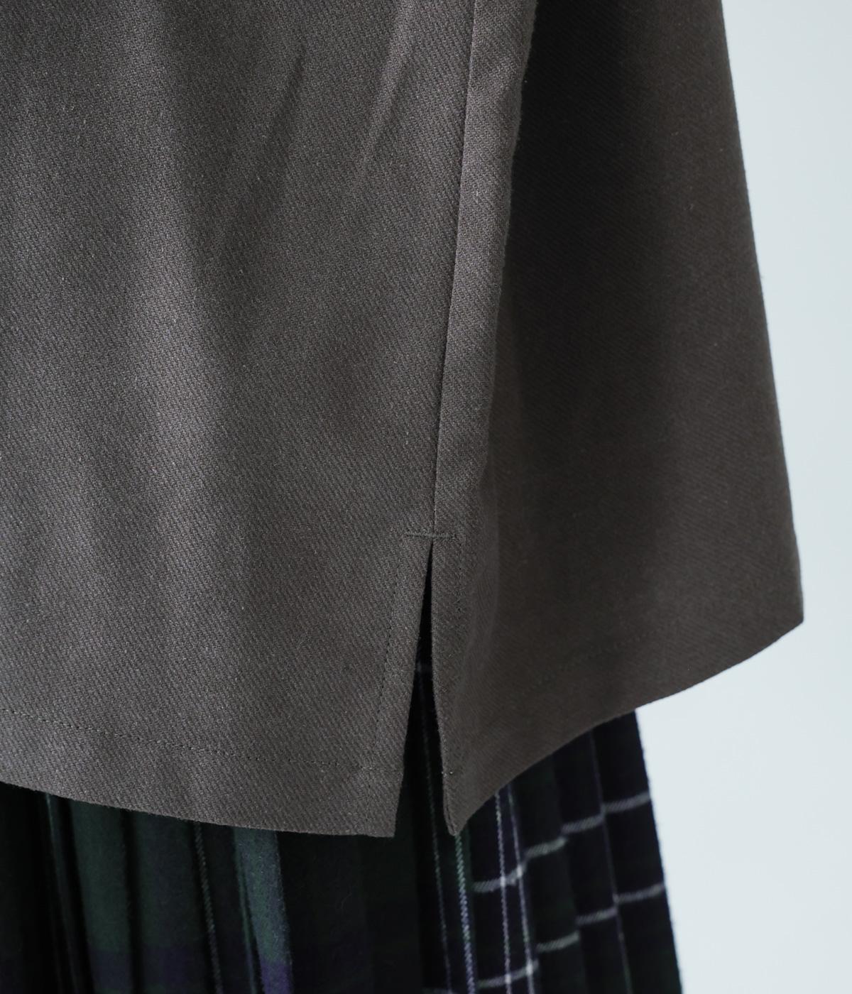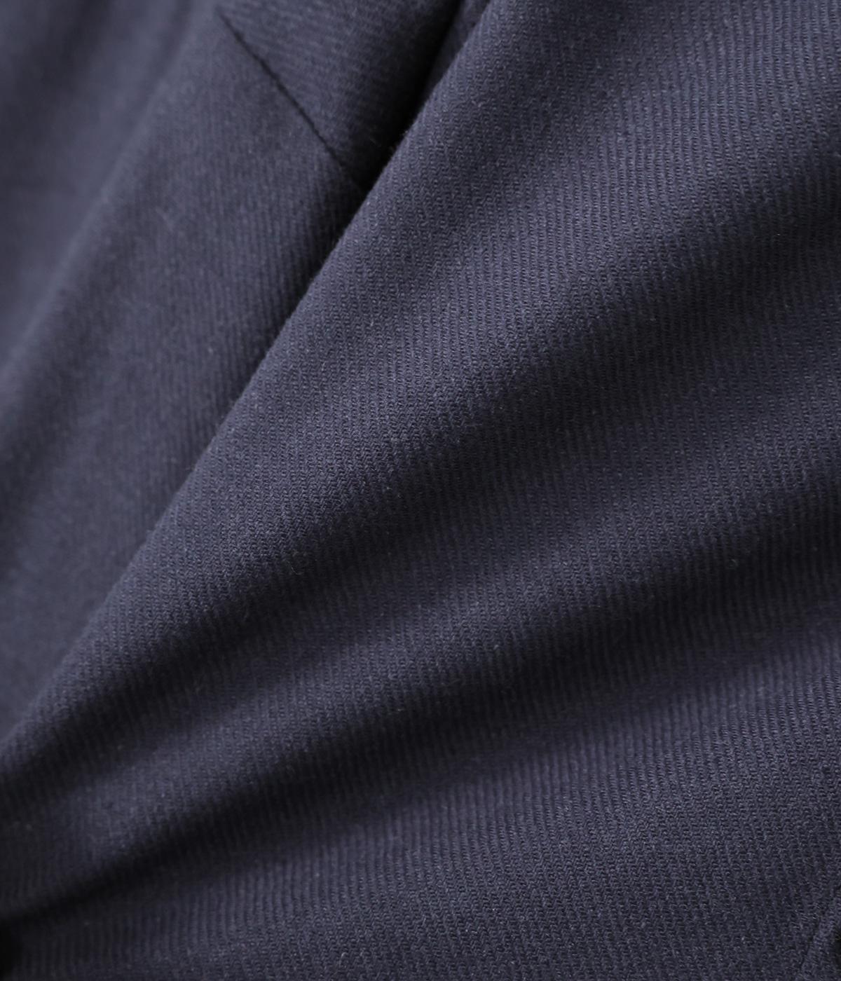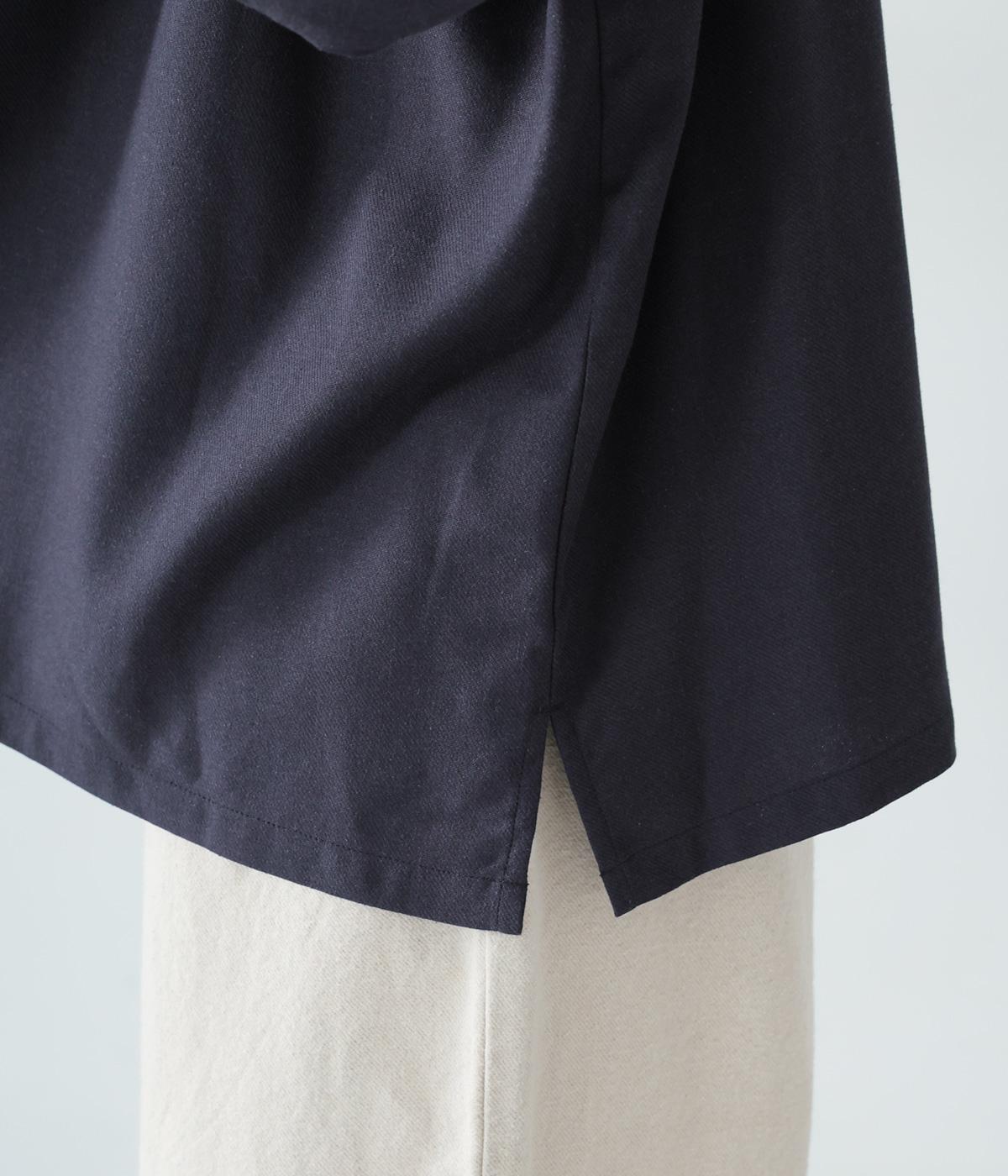 天然素材の豊かな風合いを感じるリネンコットンを使用。無地ながらもよく見ると織りの柄があり、奥行きのある表情に。やわらかく落ち感のある生地で、きれいなドレープが出るのも魅力です。