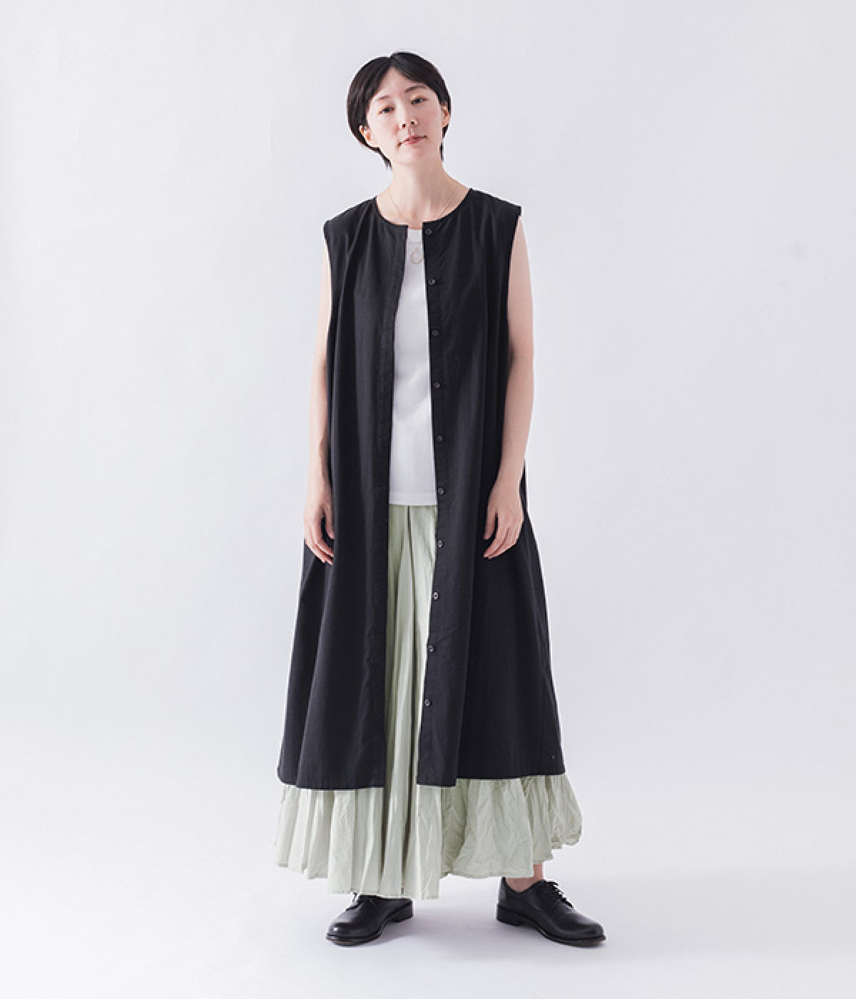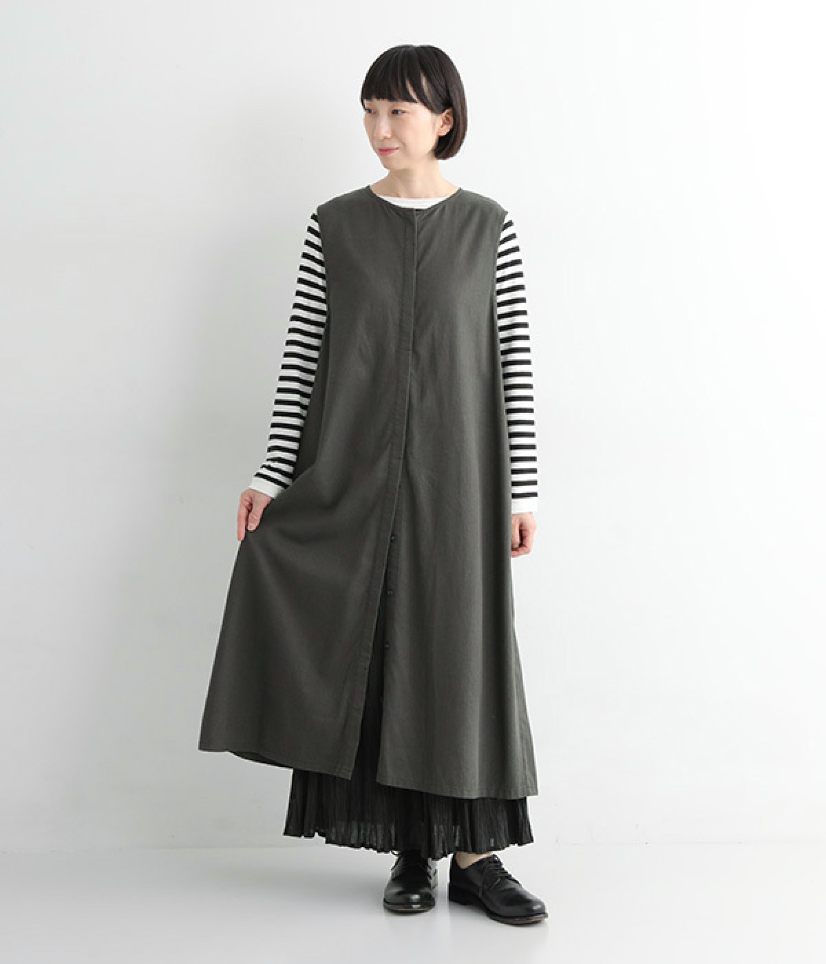 ・ジレとしてもワンピースとしても、着こなし方はお好みで