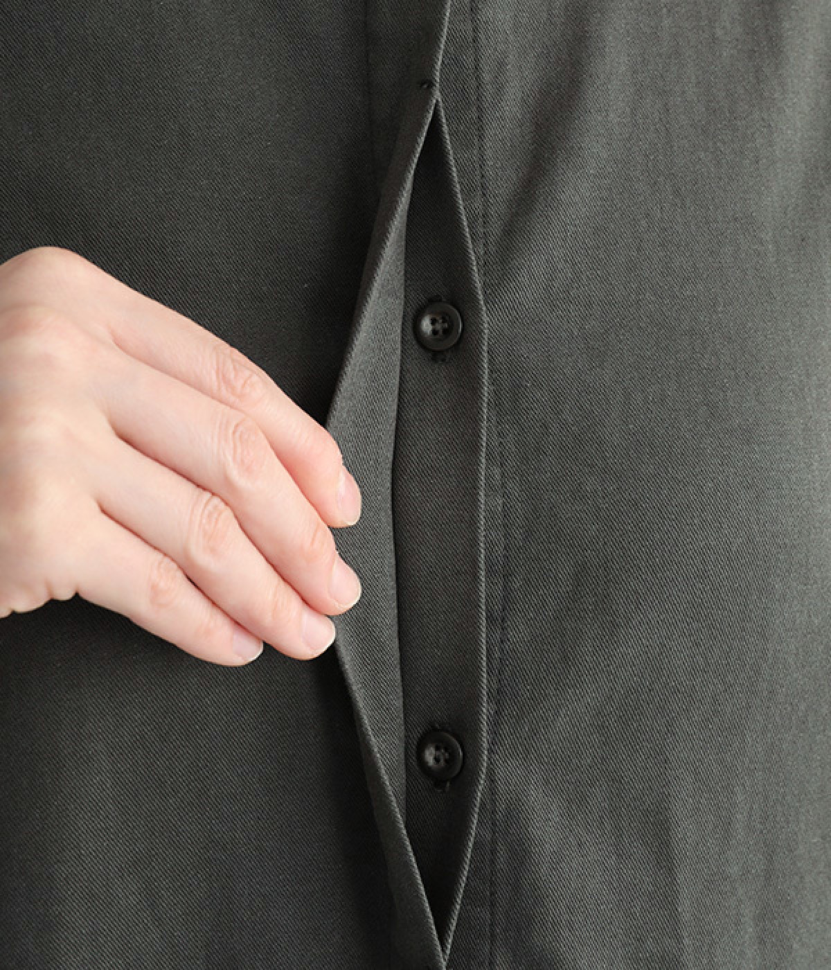 ・ボタンを隠した比翼仕立てでフロントはすっきりと