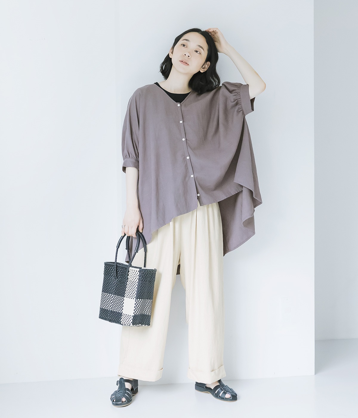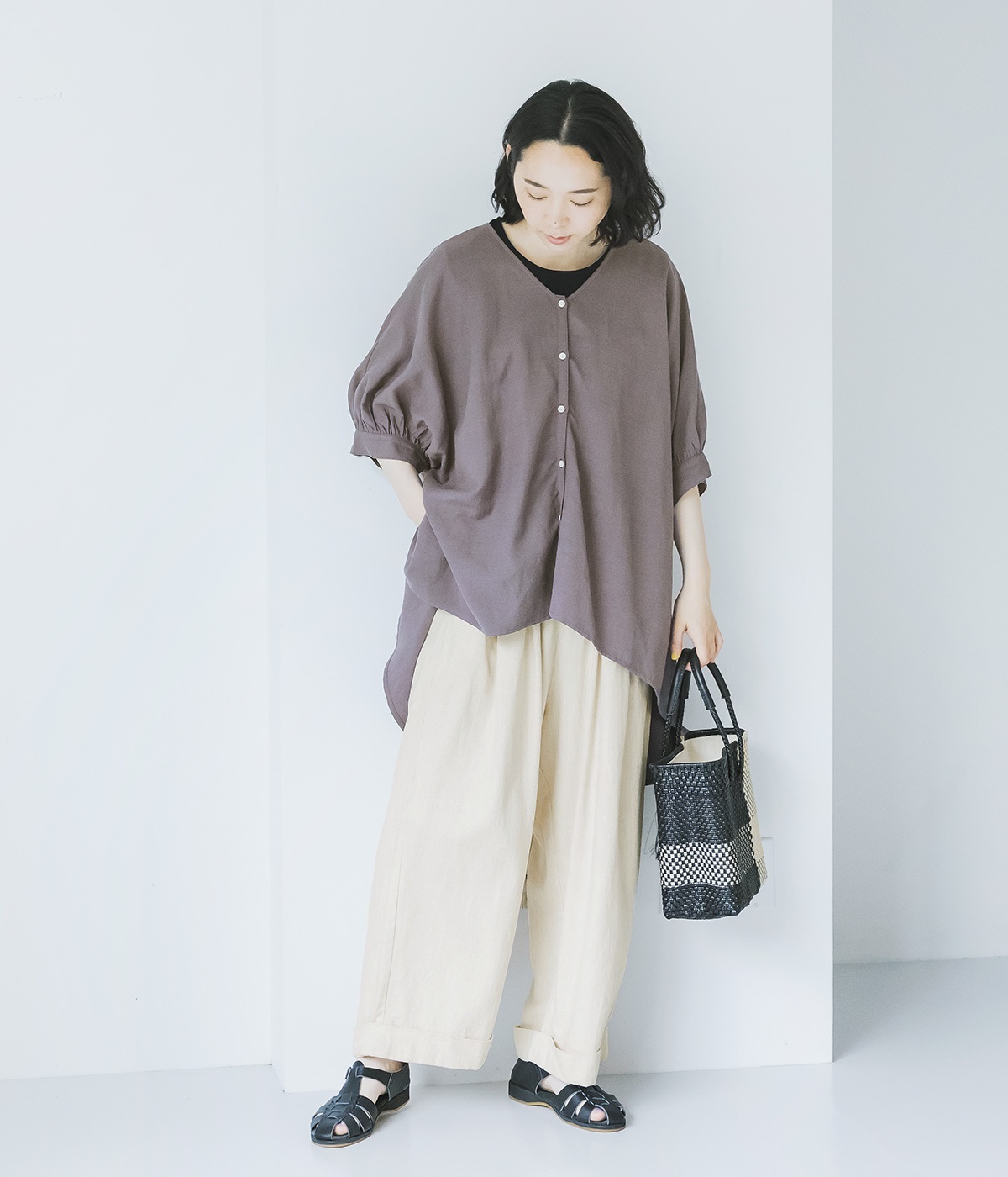 天然素材ならではの表面感があり、やや薄手で軽やかな風合い