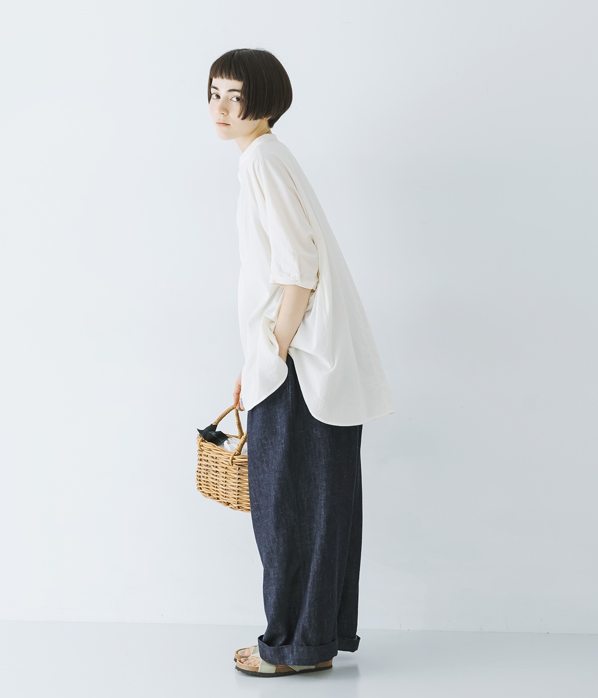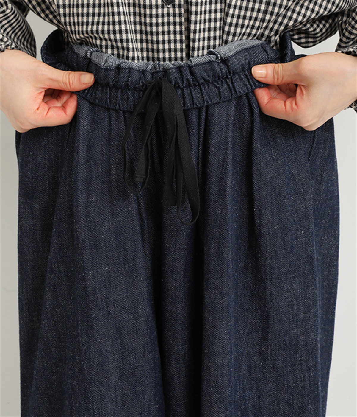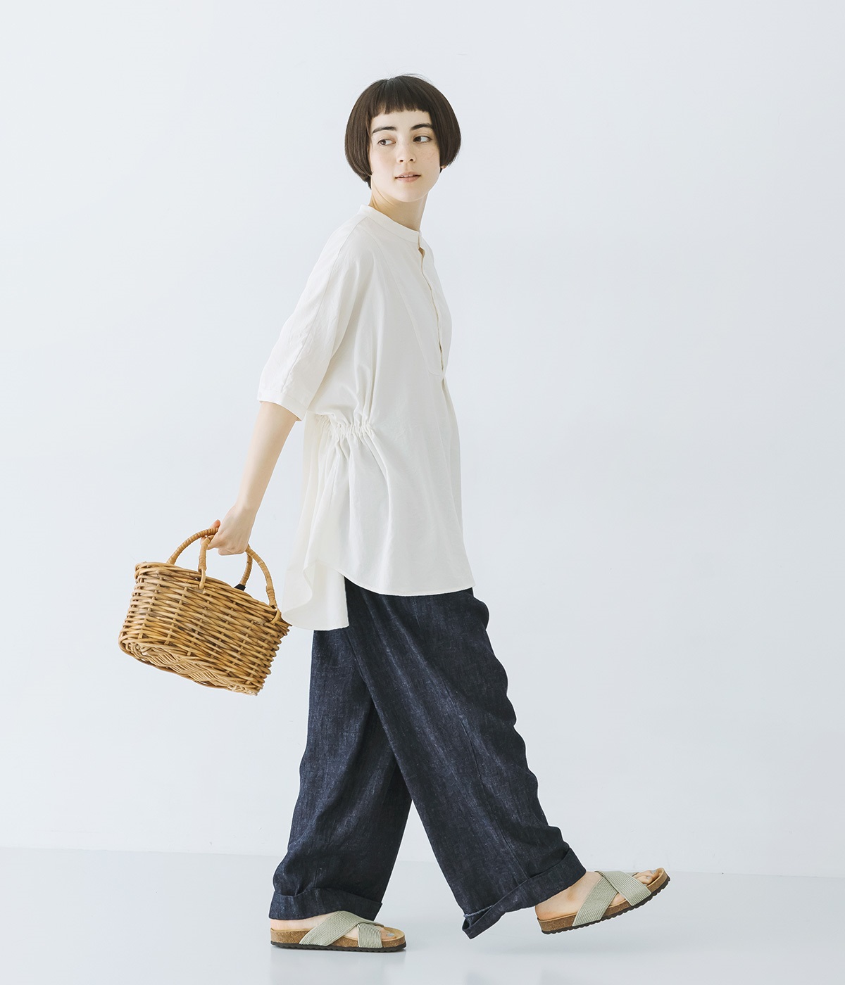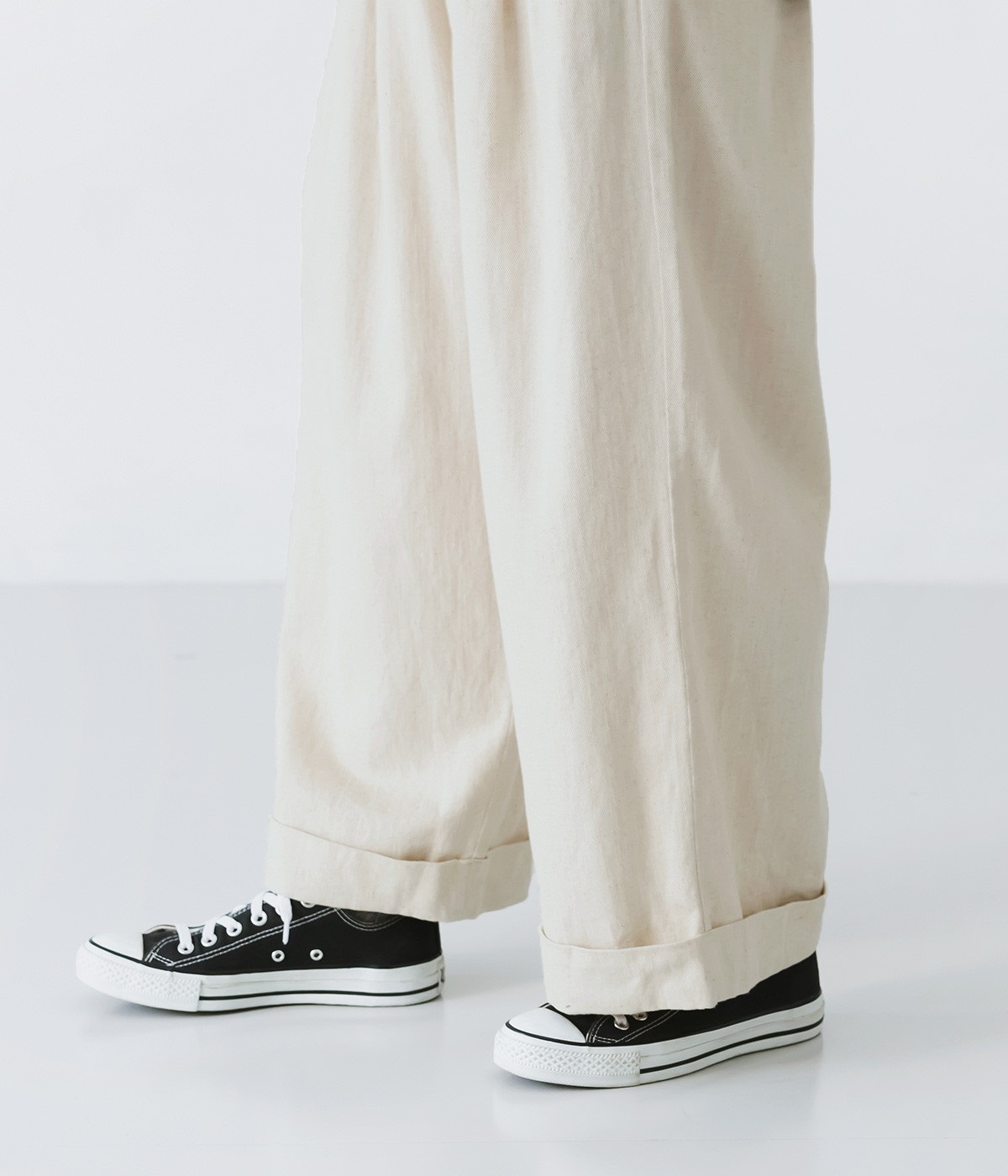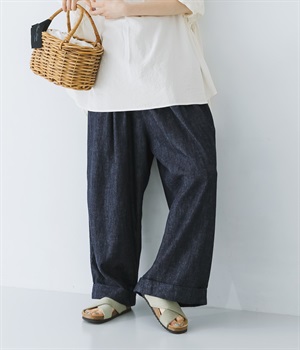 はくほどになじんでいくコットンリネンデニム素材を使用
