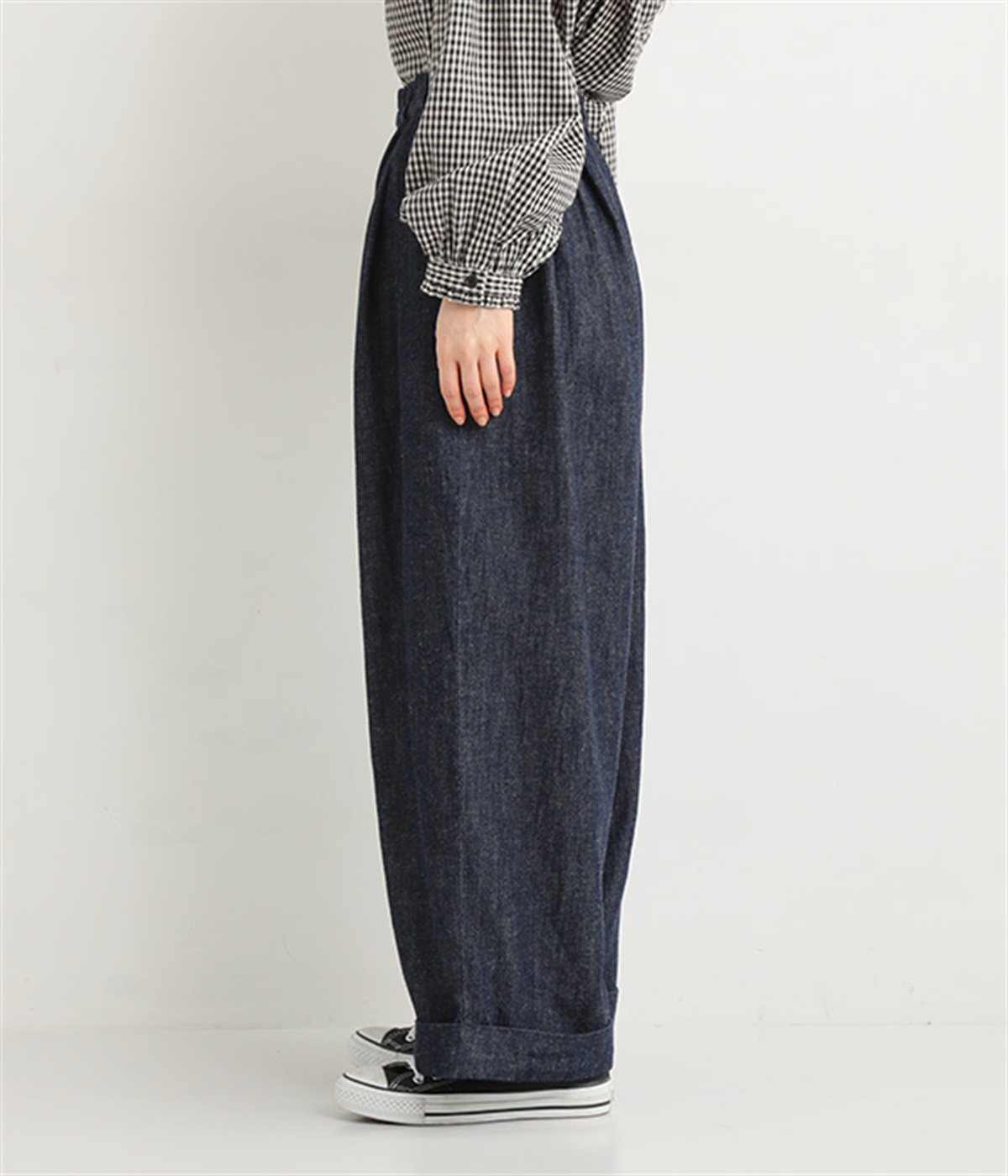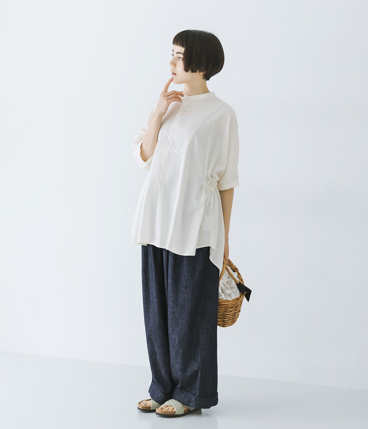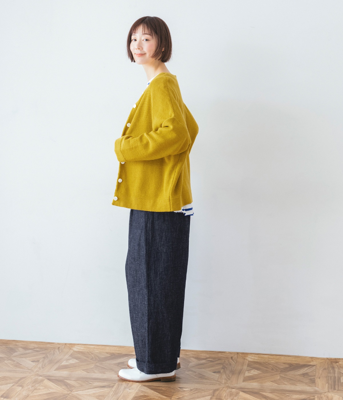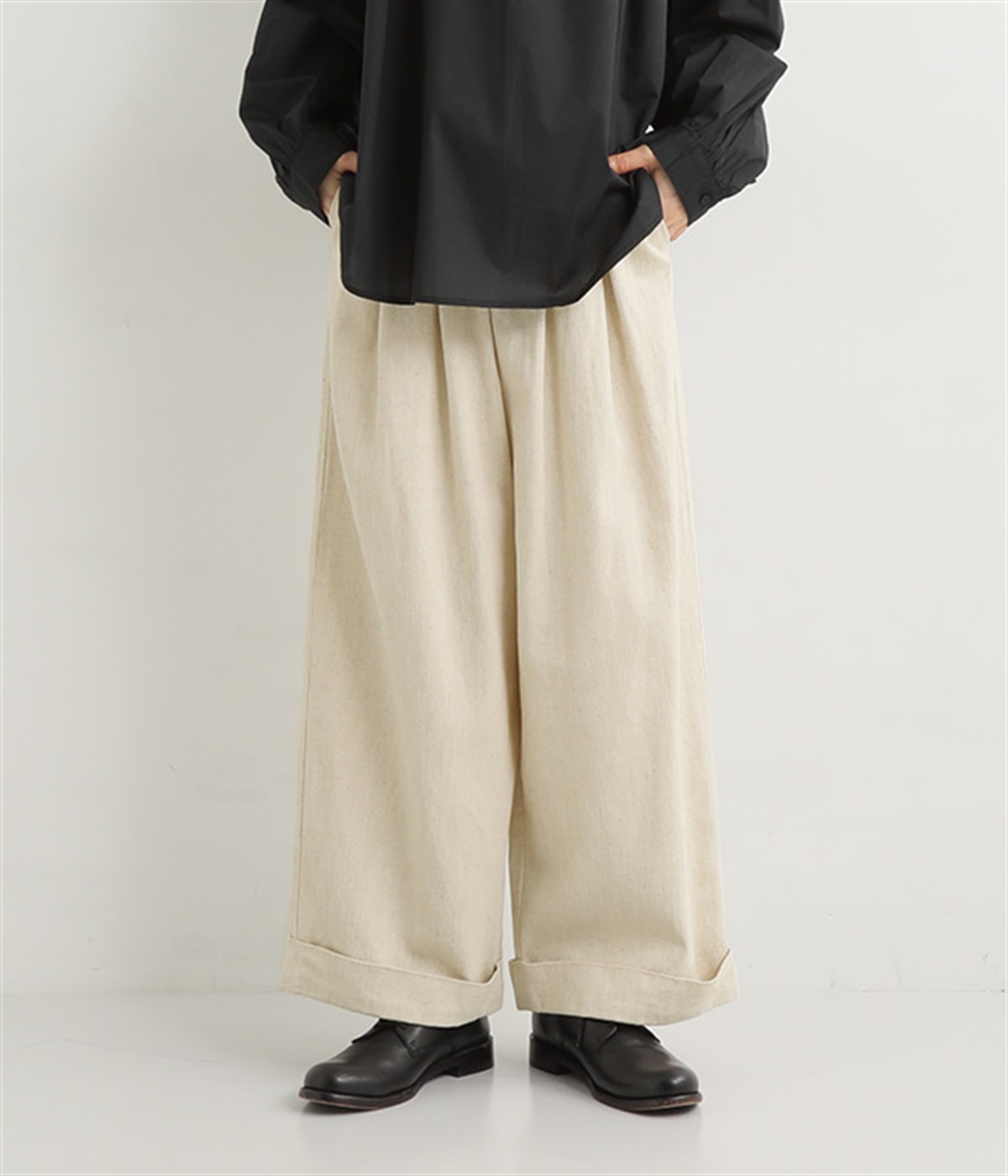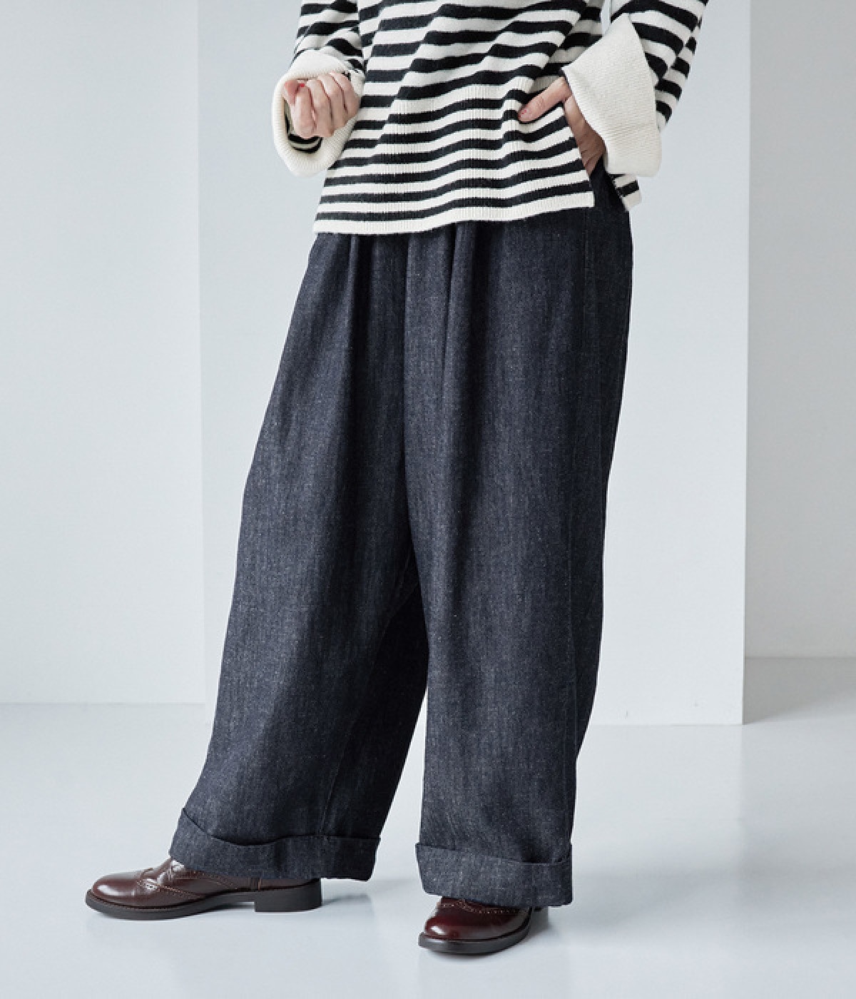 はくほどになじんでいくコットンリネンデニム素材を使用