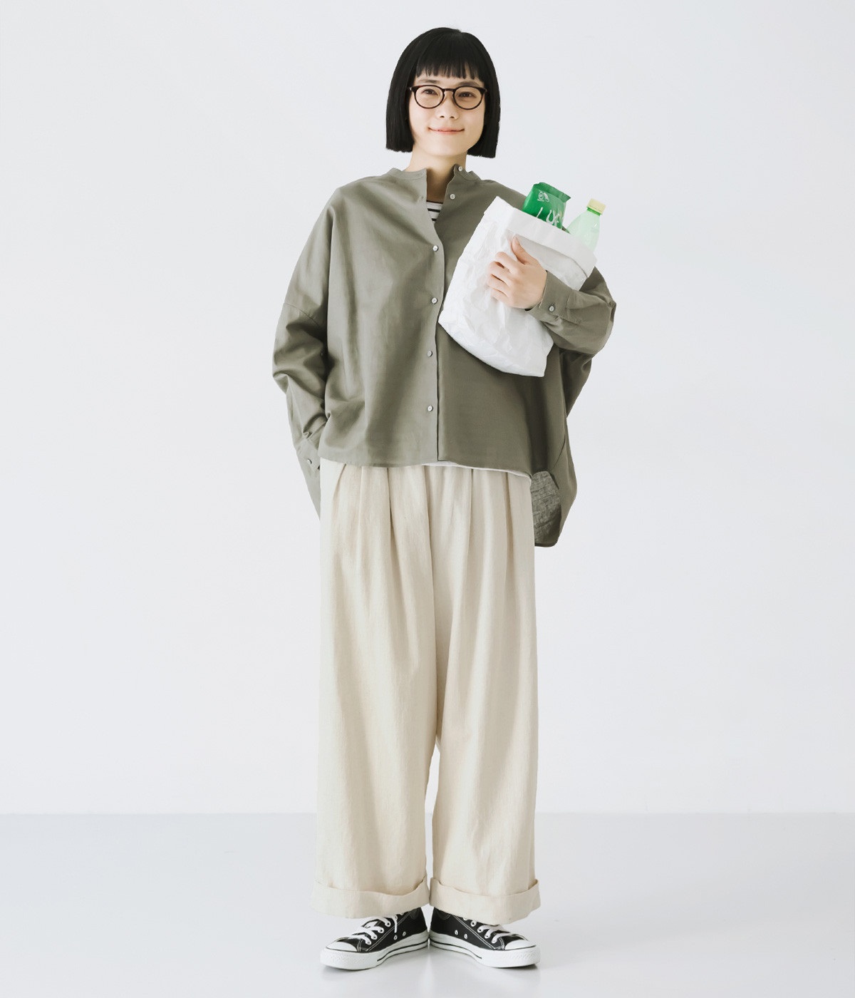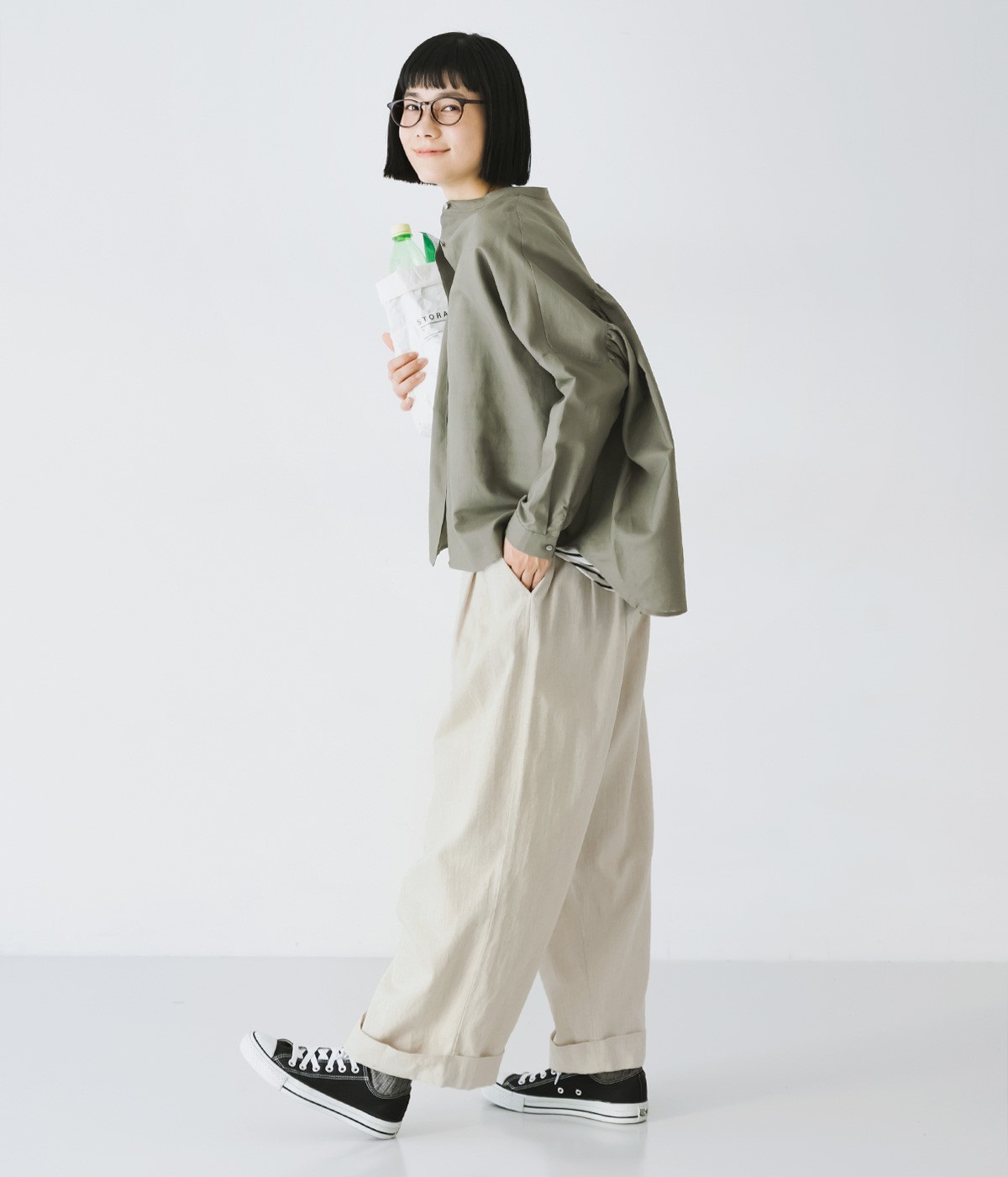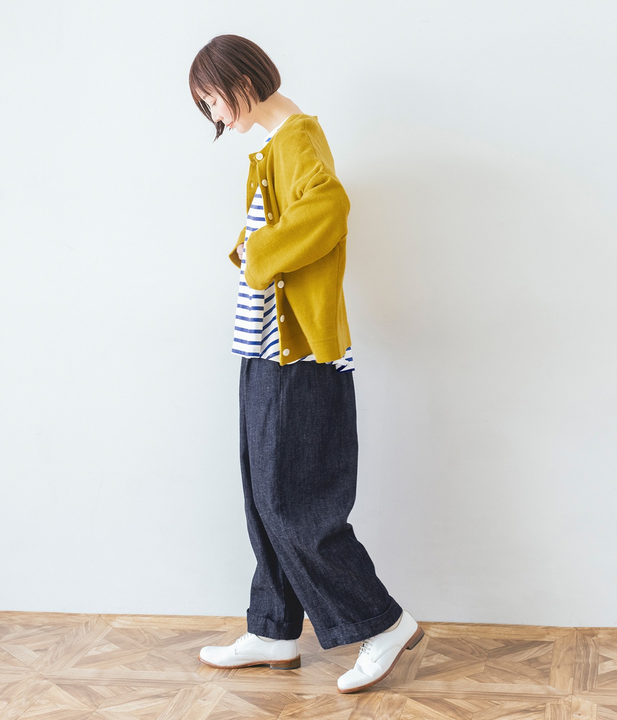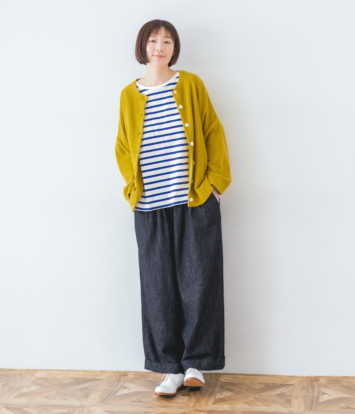 はくほどになじんでいくコットンリネンデニム素材を使用