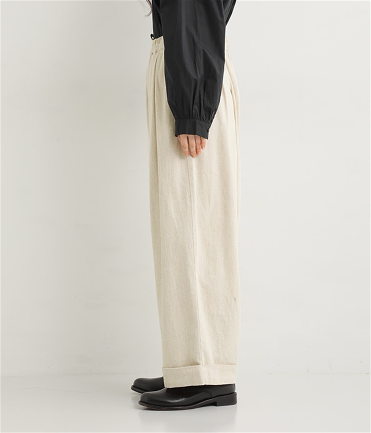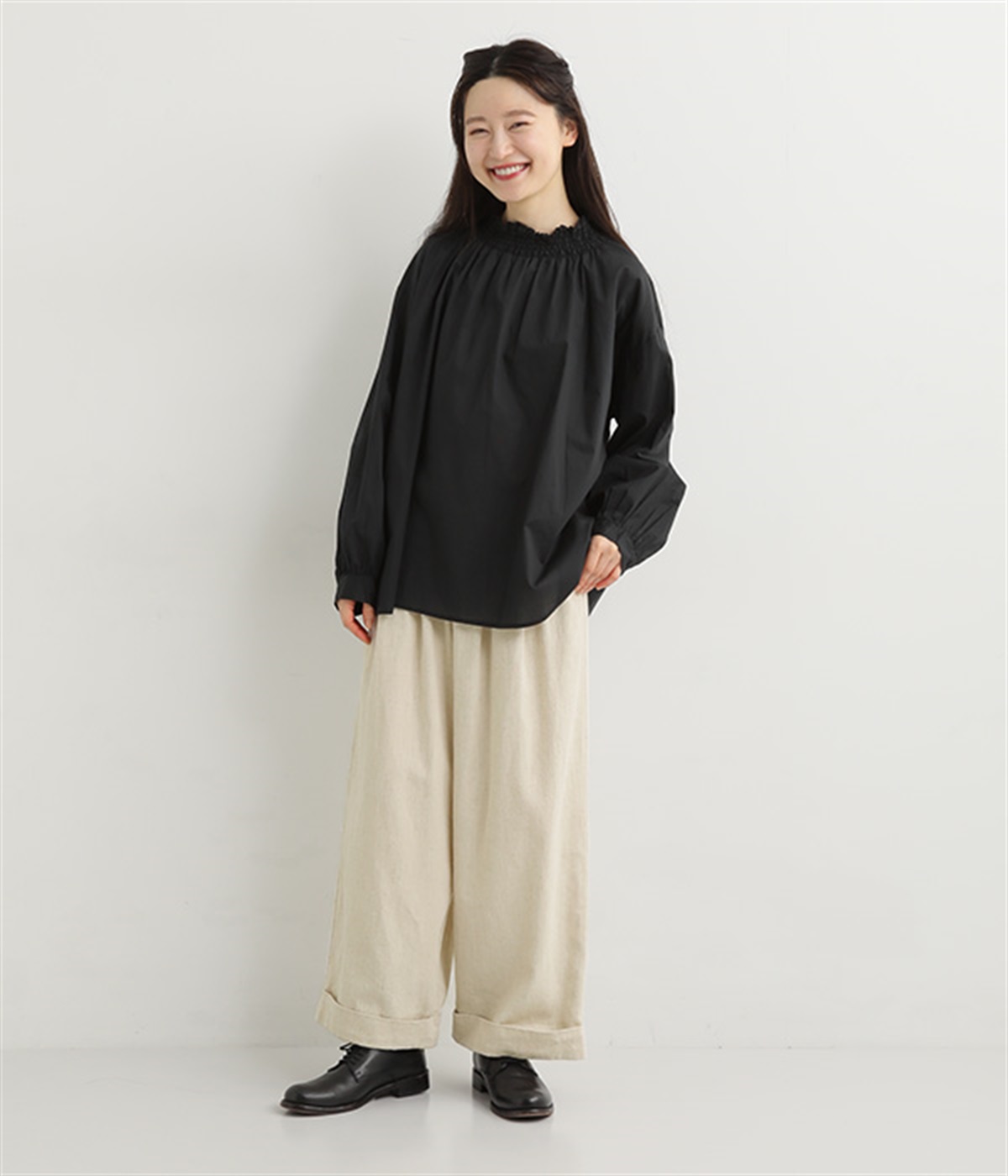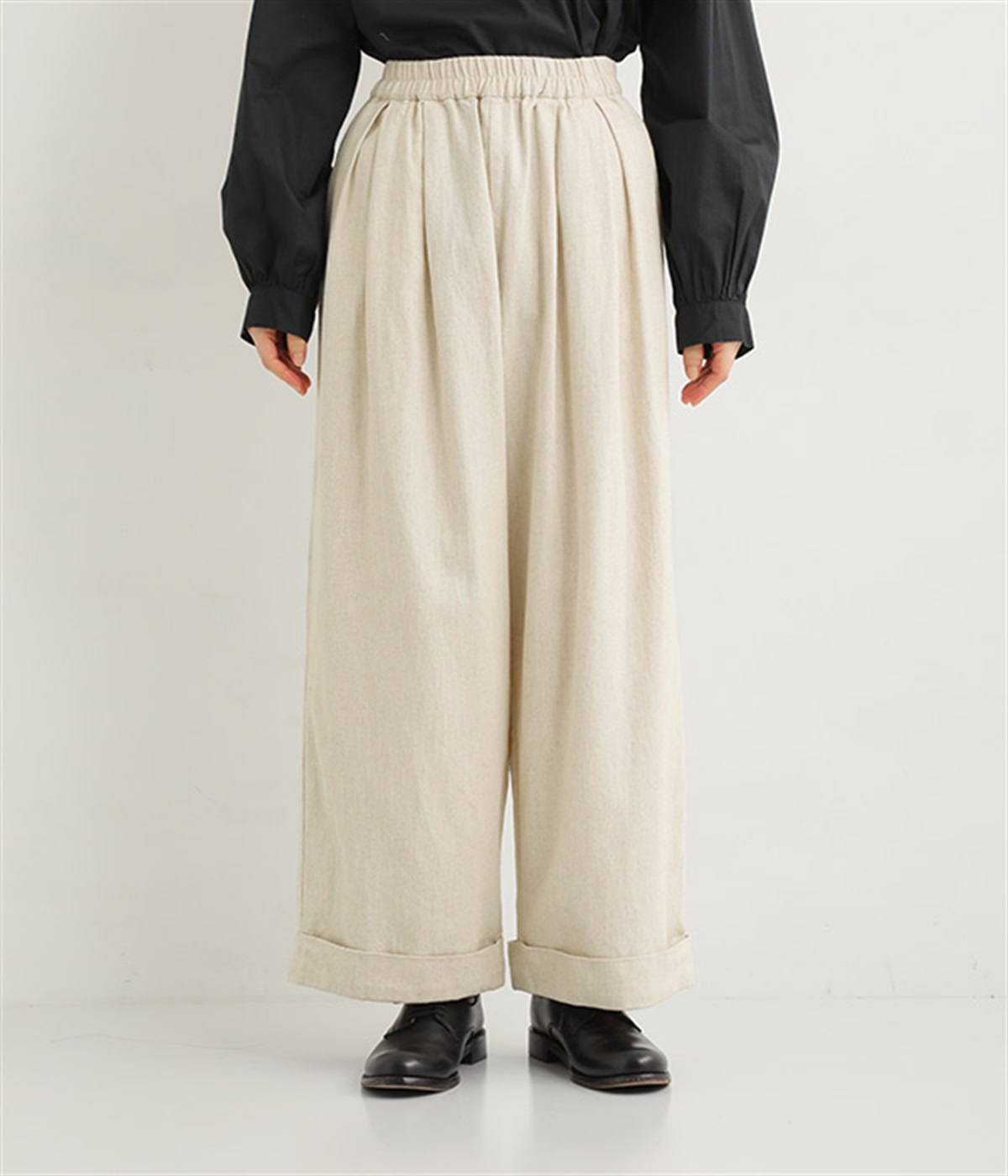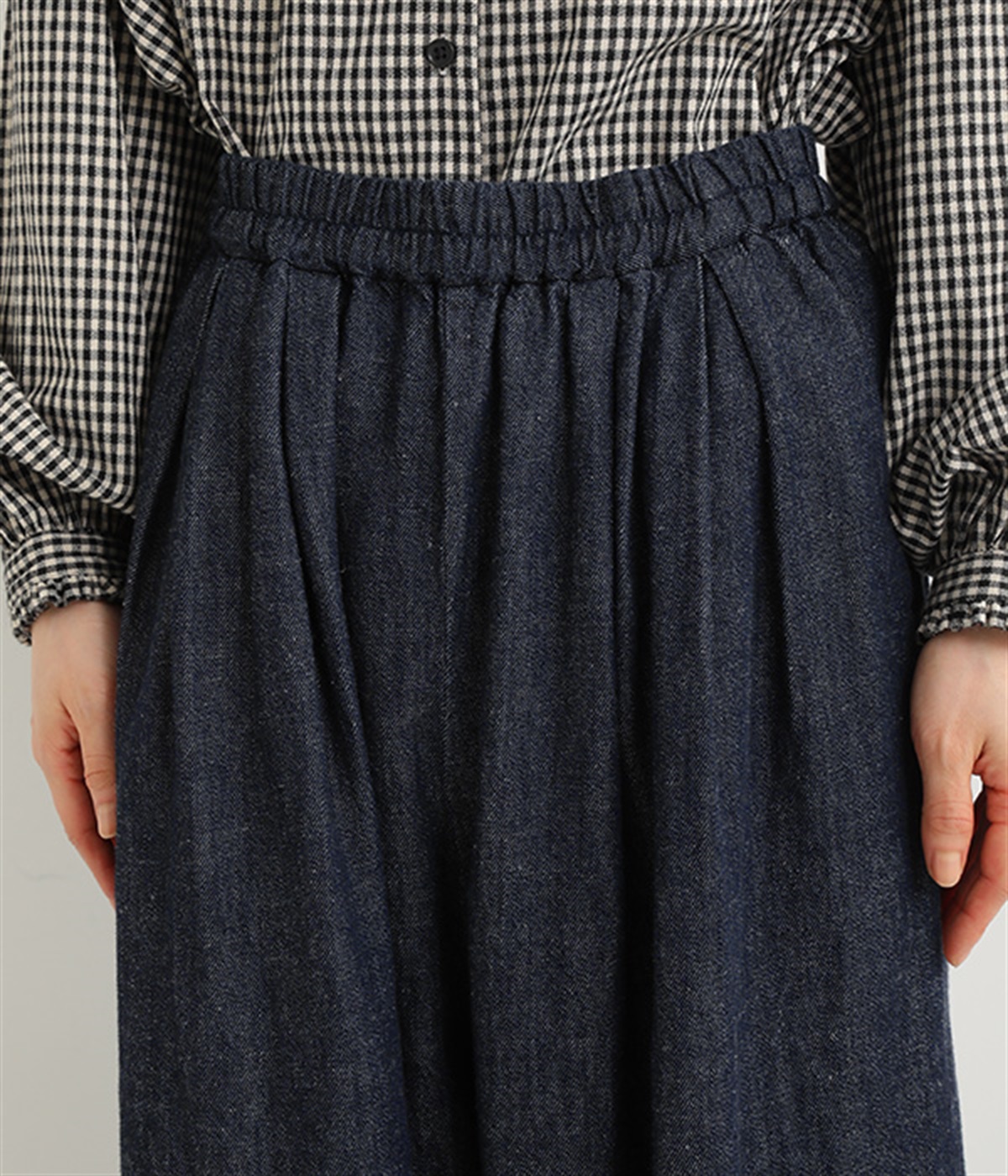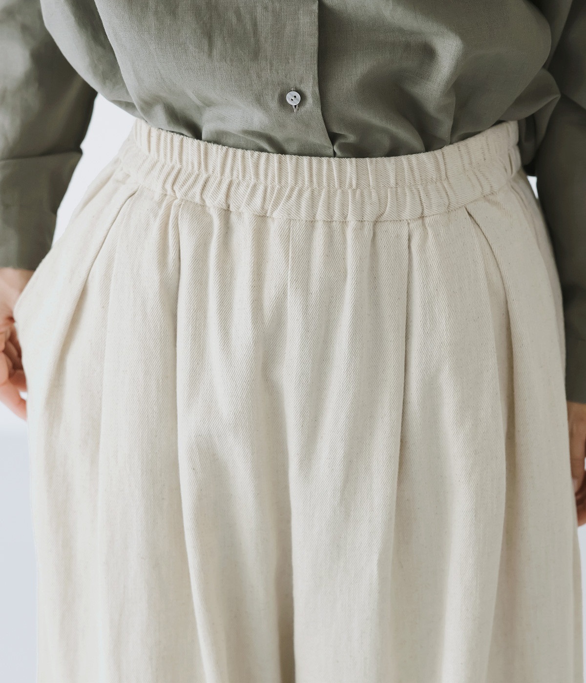 ウエストと腰まわりはタック使いですっきりと