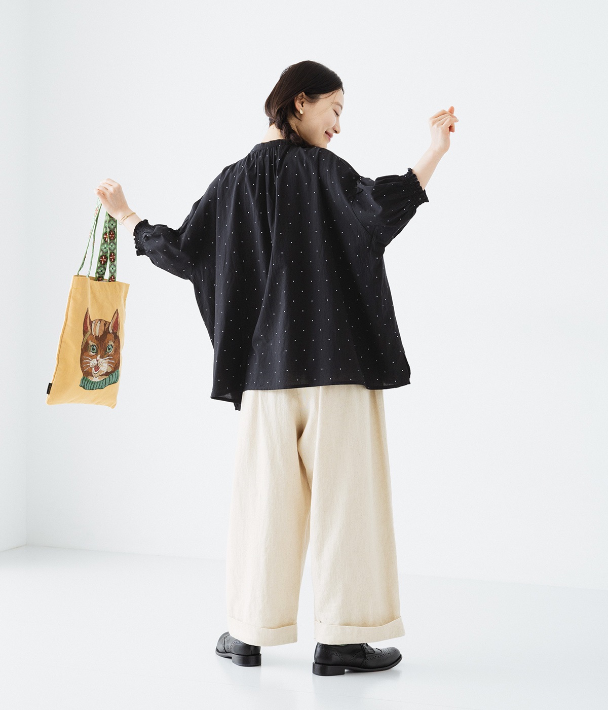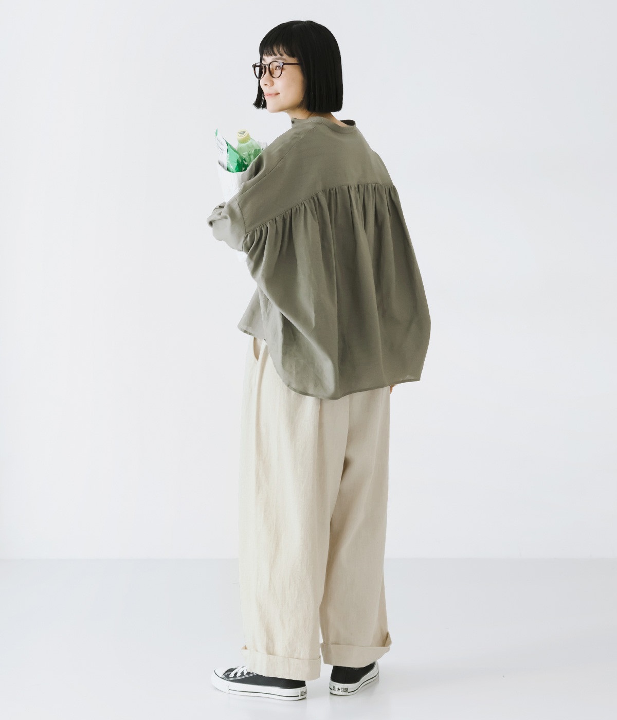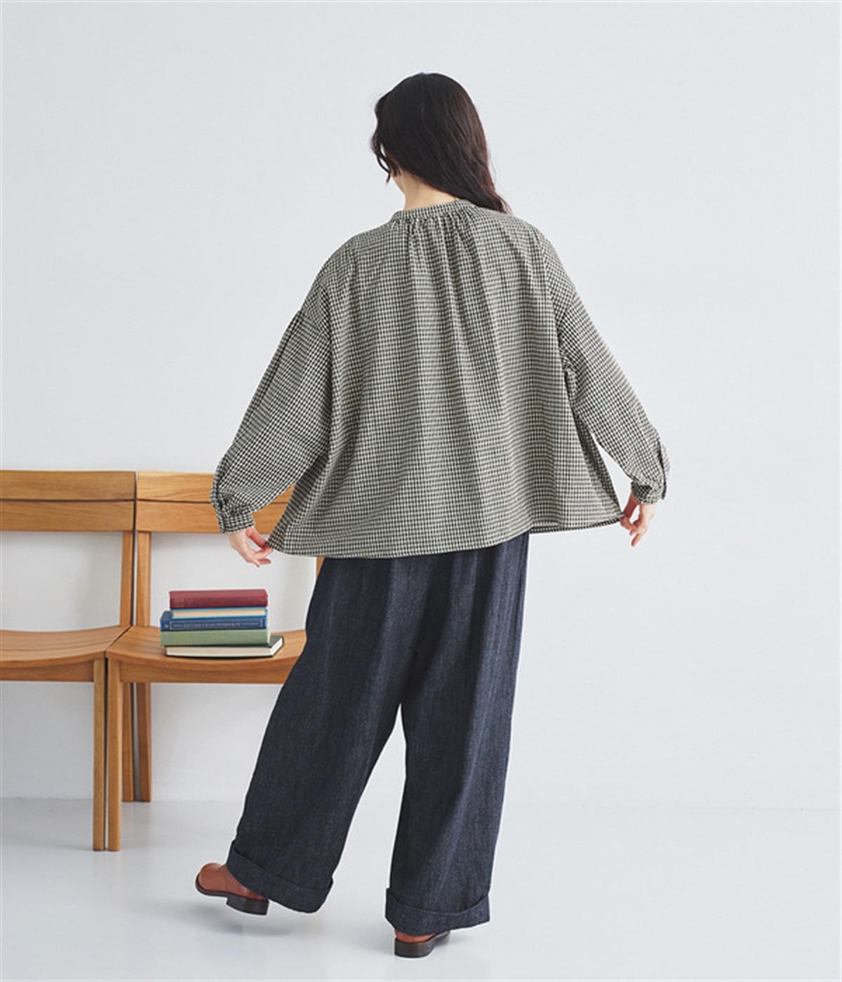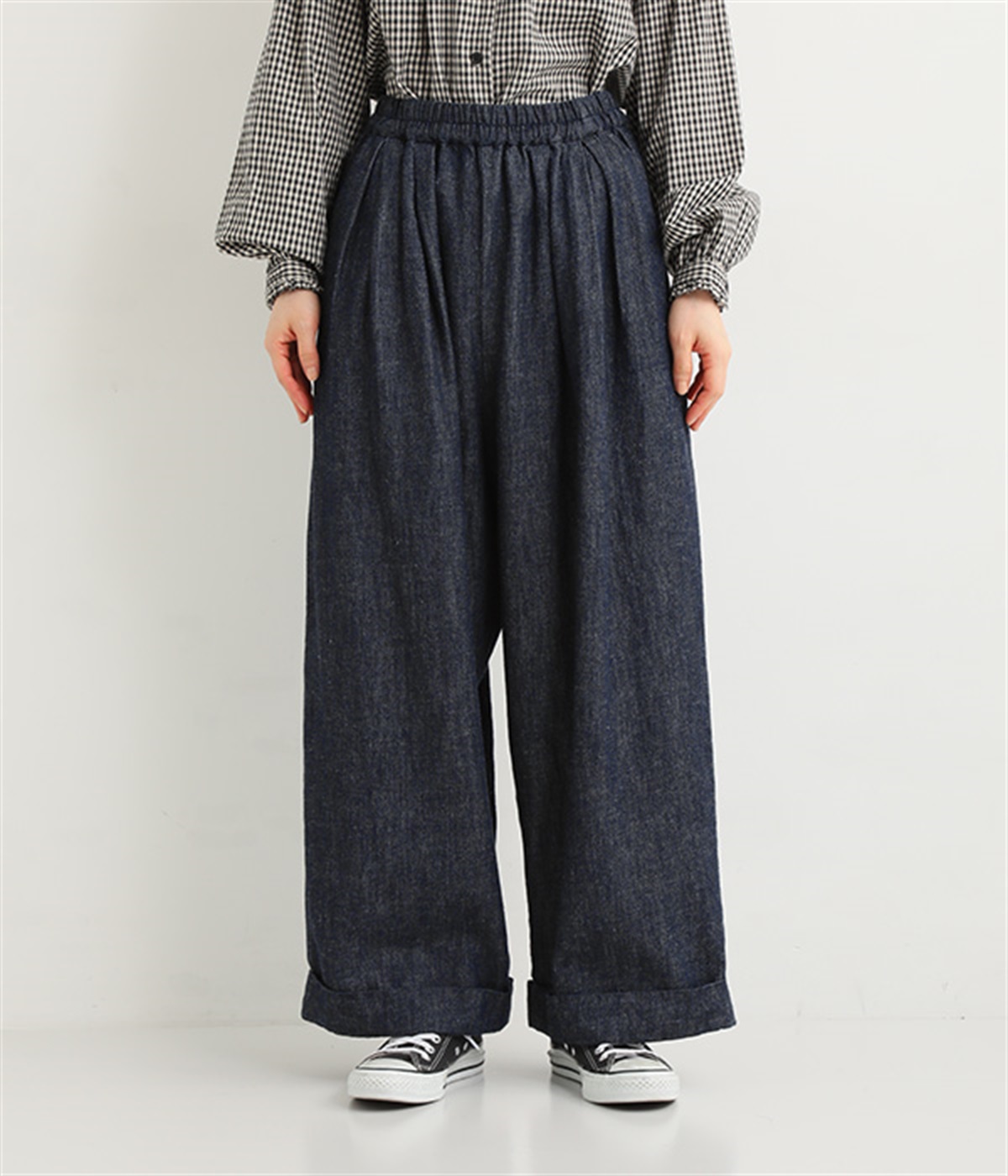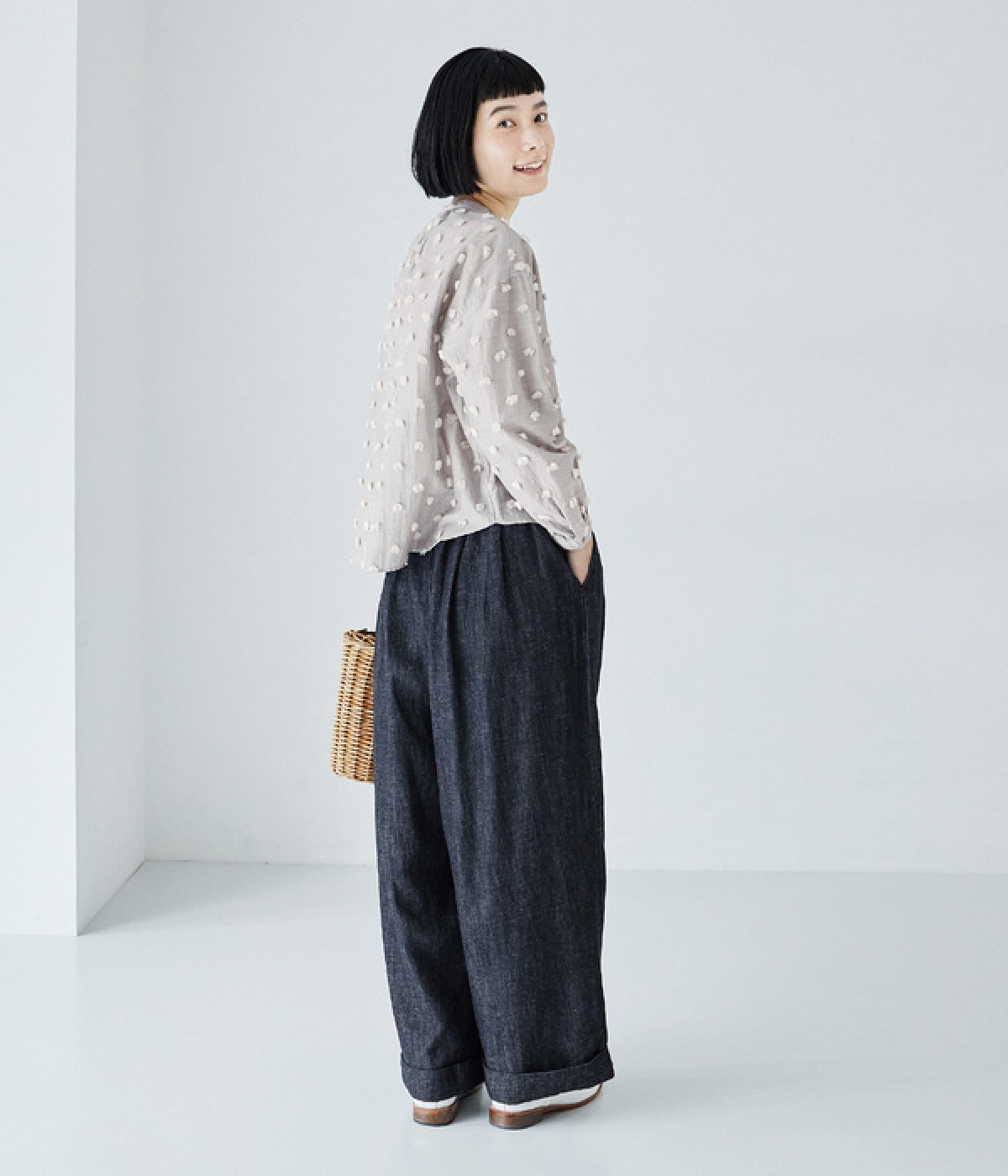 ウエストと腰まわりはタック使いですっきりと