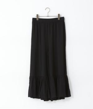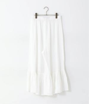 裾に切り替えとギャザーを入れた、女性らしいレイヤードスタイルをたのしめるぺチパンツ。パンツの足さばきの良さはそのままに、スカート見えするボリューム感を出しました。ウエストは一周ゴムでストレスフリーのはき心地です。