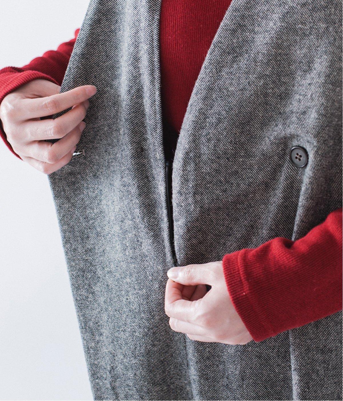 着回し力の高い万能ブラックと、一枚でサマになるツイード調のグレー。それぞれの色に合わせてボタンの色合いにもこだわりました。
