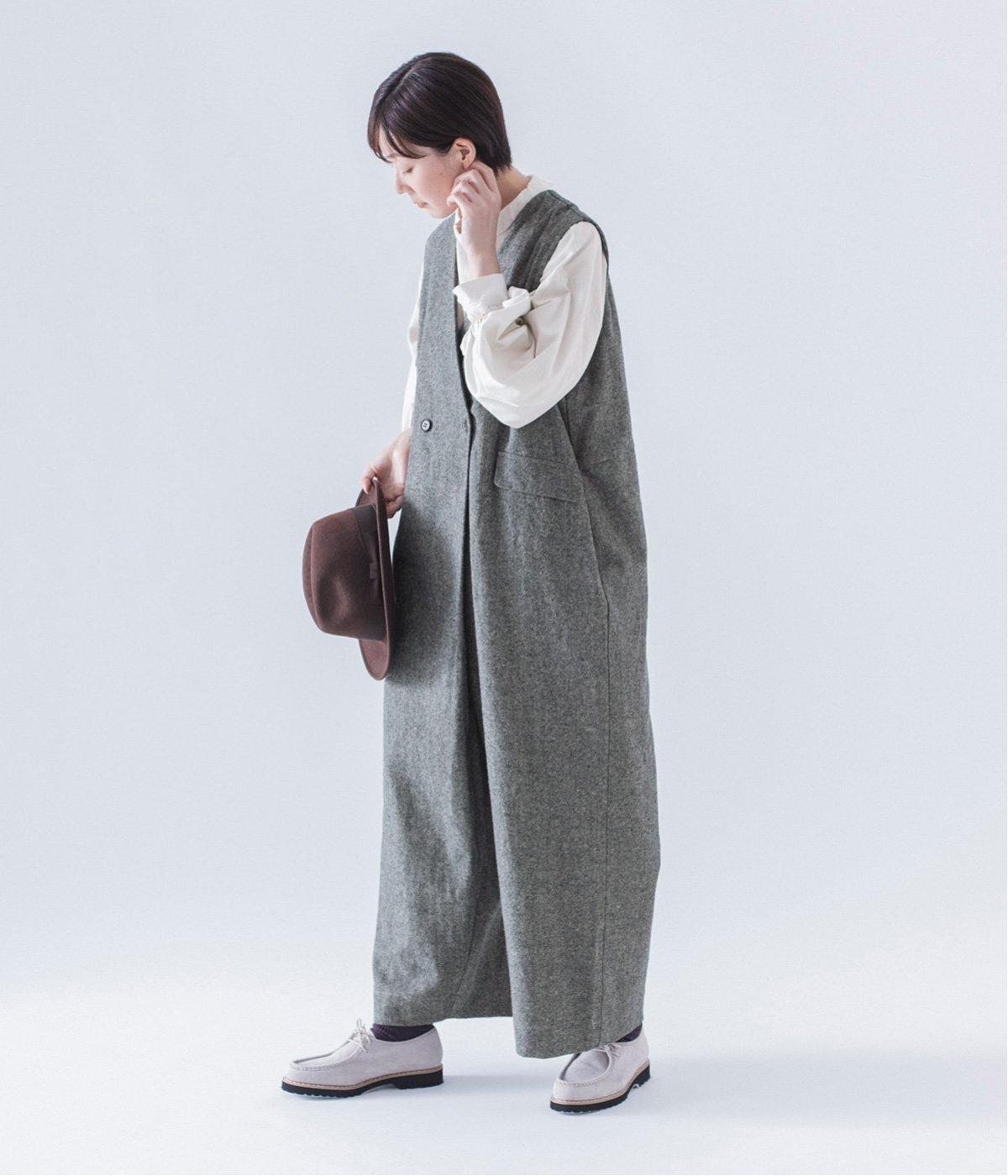 ニュアンスのある生地ですが、プリントの柄とは違って、色・柄のアイテムとも合わせやすいグレー。