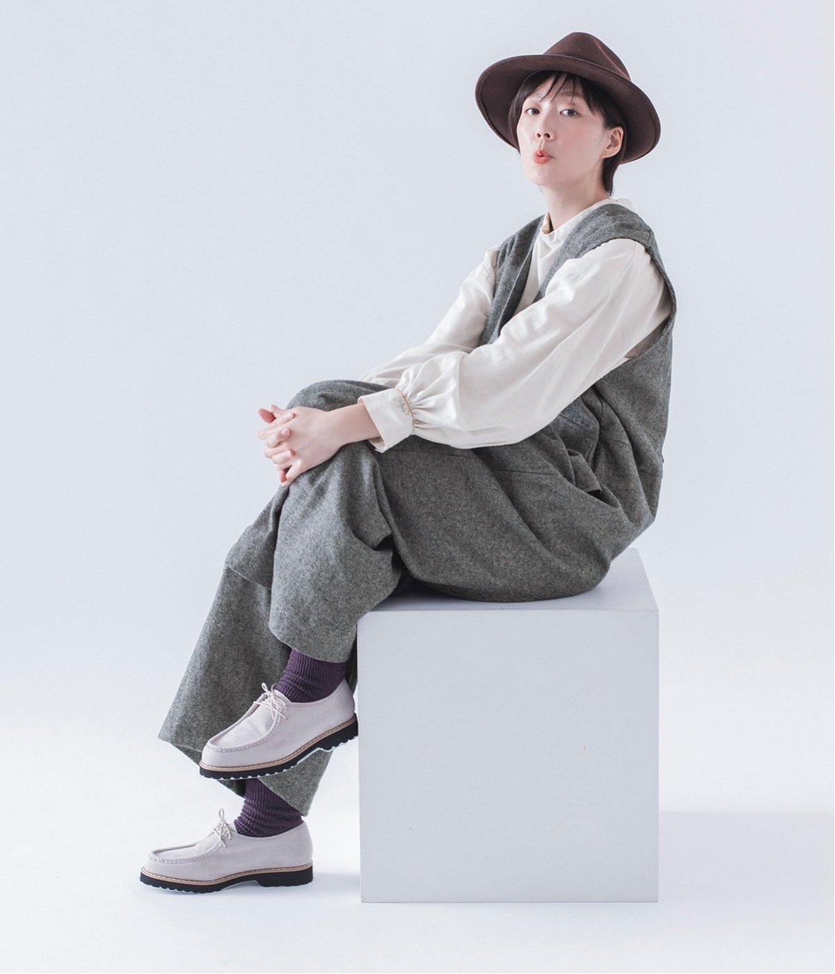 ハットやシューズで変化を出して、ちょっとマニッシュな雰囲気にも。